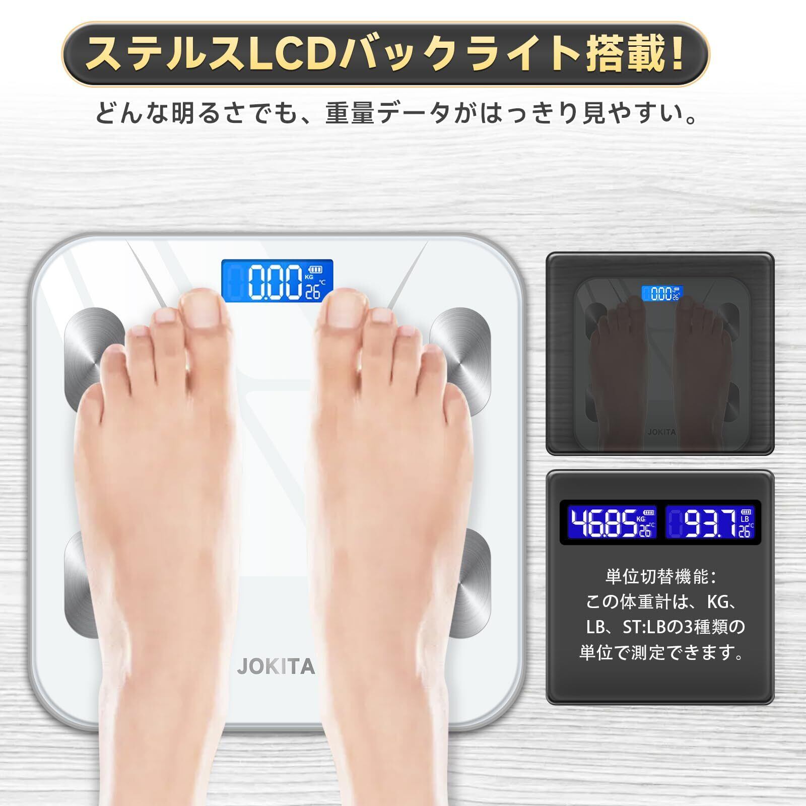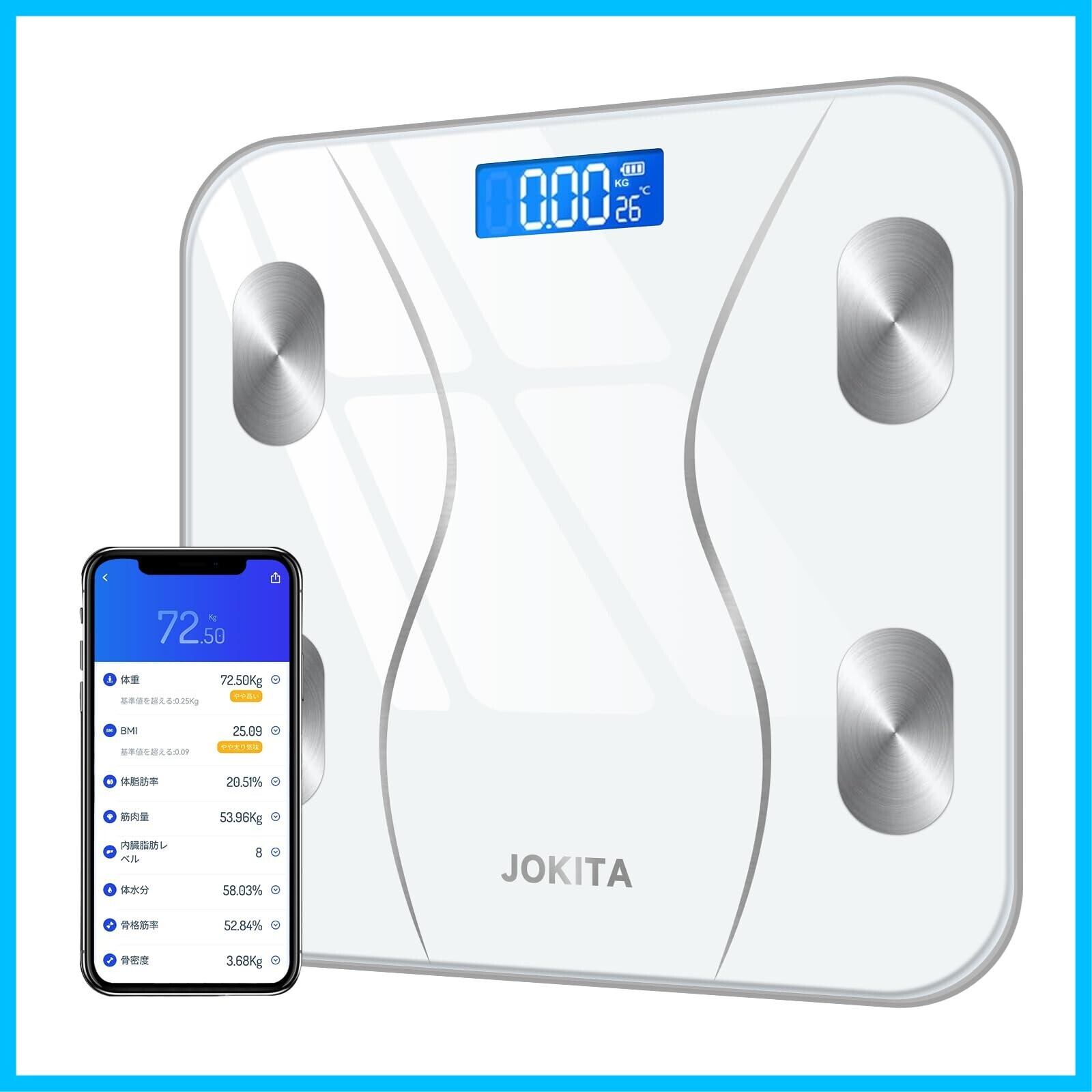 体重計 bluetooth スマホ連動 体組成計 ヘルスメーター 体脂肪計 対組成計 weight scale 電子スケール 体重計 体脂肪率 体脂肪率測定器 高精度 自動ON/OFF バックライト付 180kgまで対応 ボディスケール 強化ガラス コンパクト 軽量アプリ対応/体脂肪率/BMI/筋肉量/基礎代謝量/水分量/体脂肪量 日本語取扱説明書 電池付属 (ホワイト)