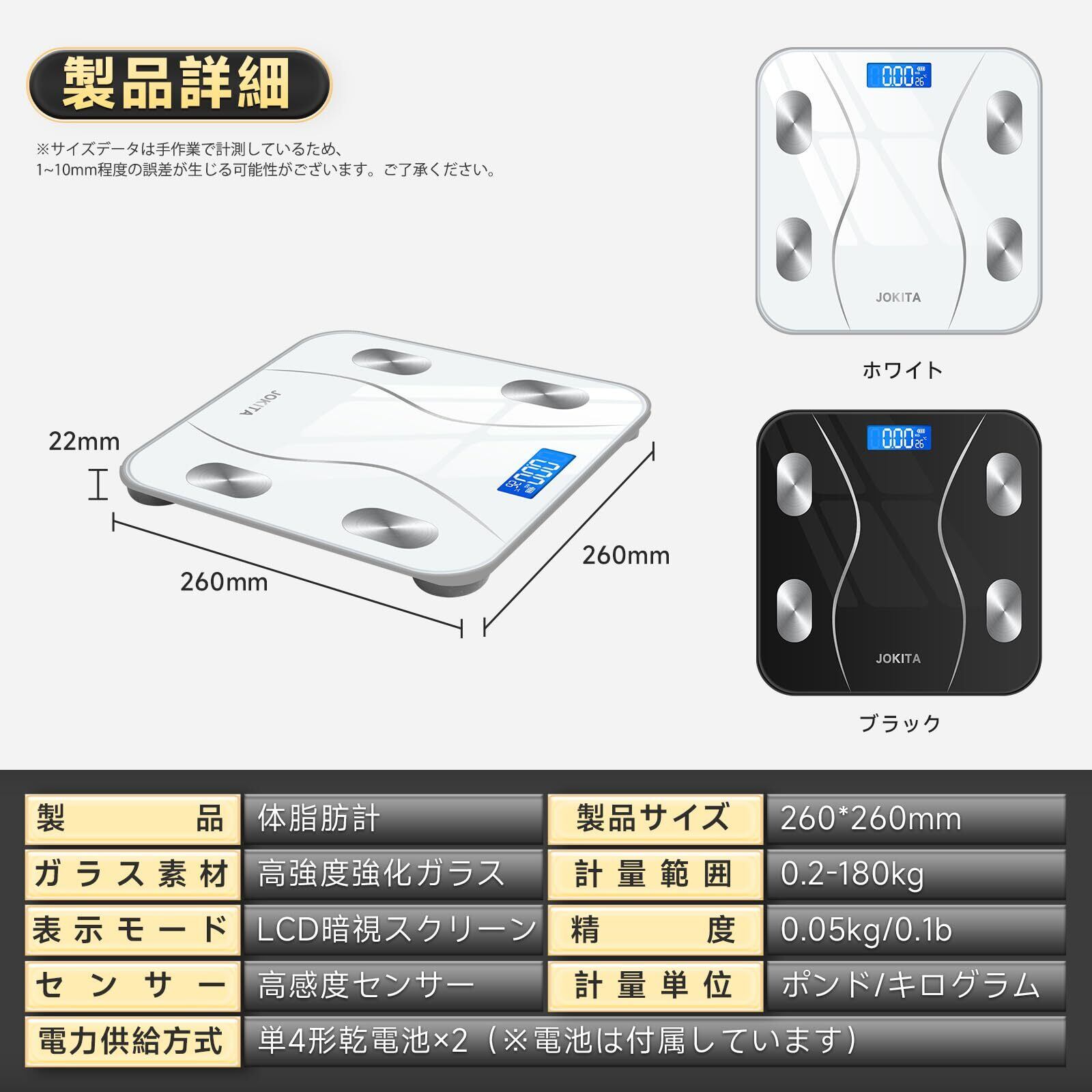 【包装内容と保証期間】パッケージ内容:体脂肪計、2本の単4形電池、日本語のユーザーマニュアル。初期不良に対しては、購入後180日以内に返金または交換を提供します。製品に問題がある場合や、製品自体に問題がある場合(初期不良など)、すぐにお問い合わせください。連絡先の取り方については、以下の手順に従ってください:「アカウントサービス」→「注文履歴」→「販売者に連絡する」