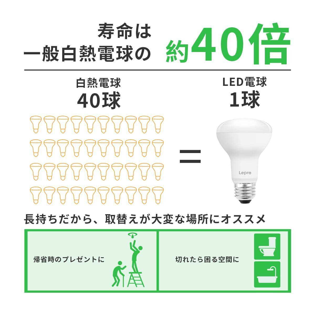 【高演色性・長寿命】電球の演色性はRa80以上に達し、物の本当の色を自然で綺麗に再現できます。寿命は一般白熱電球の約40倍、長持ちで取替えが大変な場所にお勧めします。帰省時両親のプレゼントに、トイレ、浴室、キッチンなど切れたら困る場所に最適。日本PSE認証済み。●ご注意:商品の品質には万全を期しておりますが、ご利用の際何かご不明な点がございましたら、『お気軽に店名「Lepro JP」-「質問する」の手順でクリックしてお問い合わせ下さい。』
