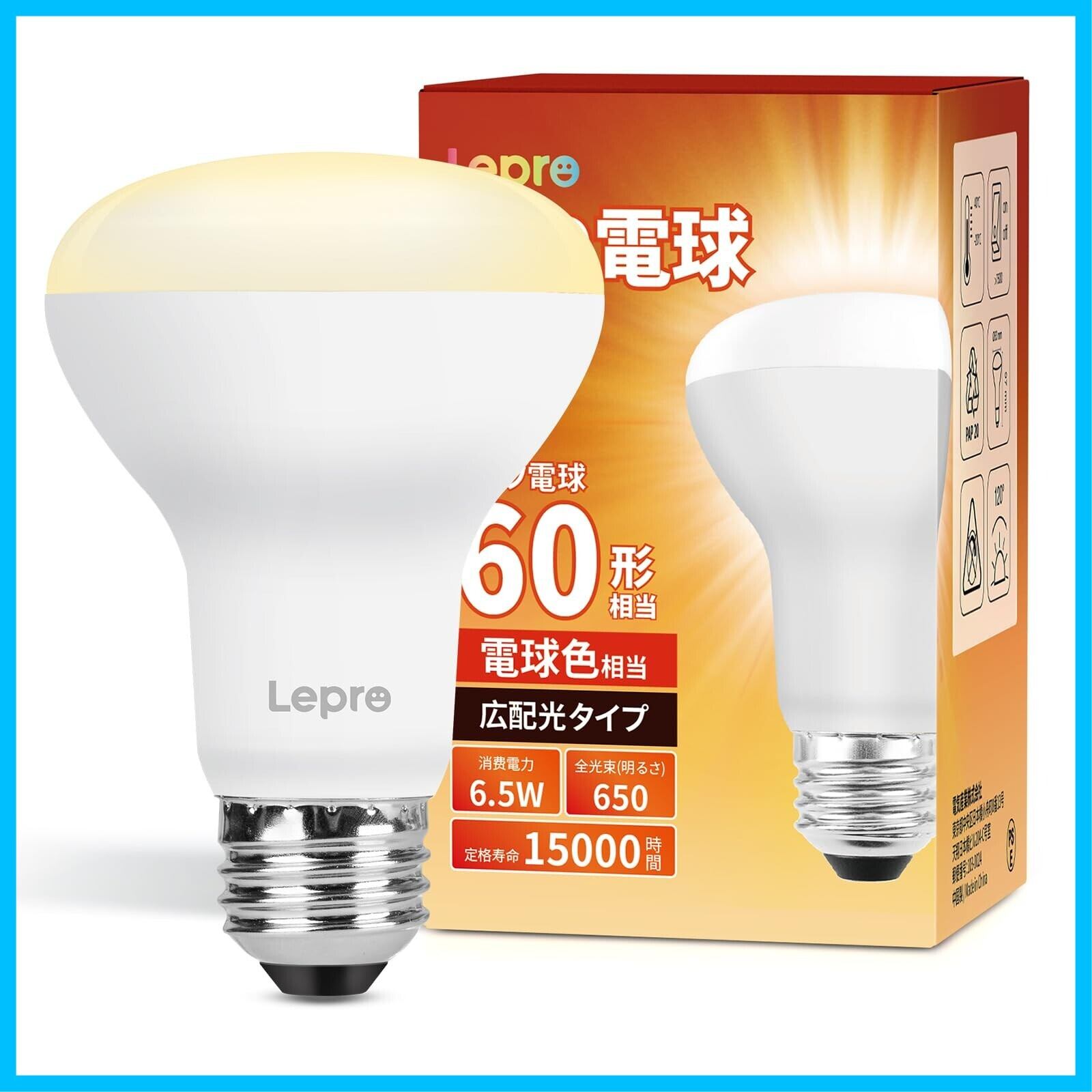 Lepro レフ電球 60W形 E26 電球色 1個入り LED 電球 非調光型 6.5W 650lm レフタイプ 広配光タイプ 高演色性 PSE認証済み 密閉器具対応 省エネ キッチン 台所 トイレ リビング ダイニング 脱衣所 寝室 廊下 玄関照明用 レフランプ