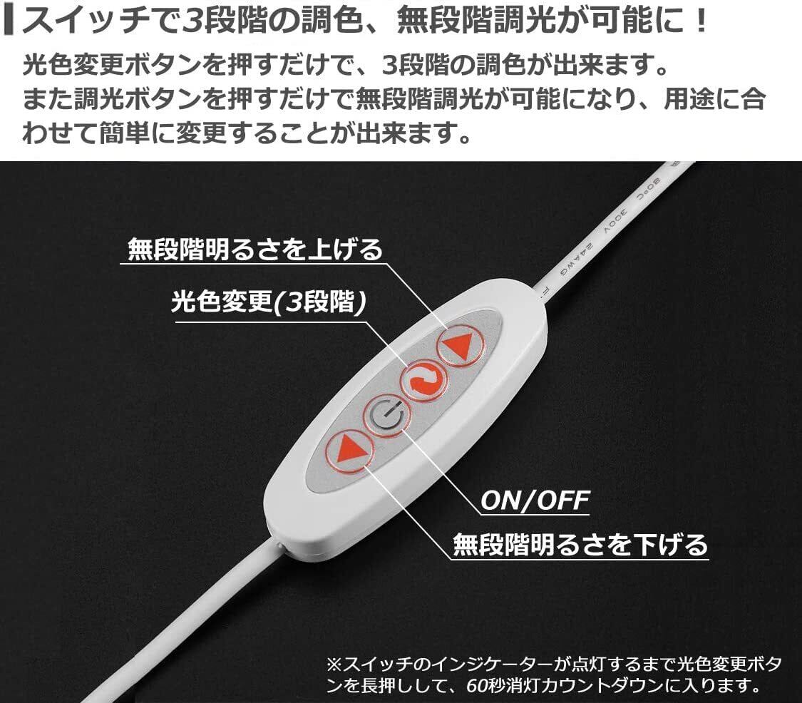 【三段階調色/無段階調光】スイッチの光色変更ボタンを押すだけで、3段階の調色が出来ます。また調光ボタンを押すだけで無段階調光が可能になり、用途に合わせて簡単に変更することが出来ます。