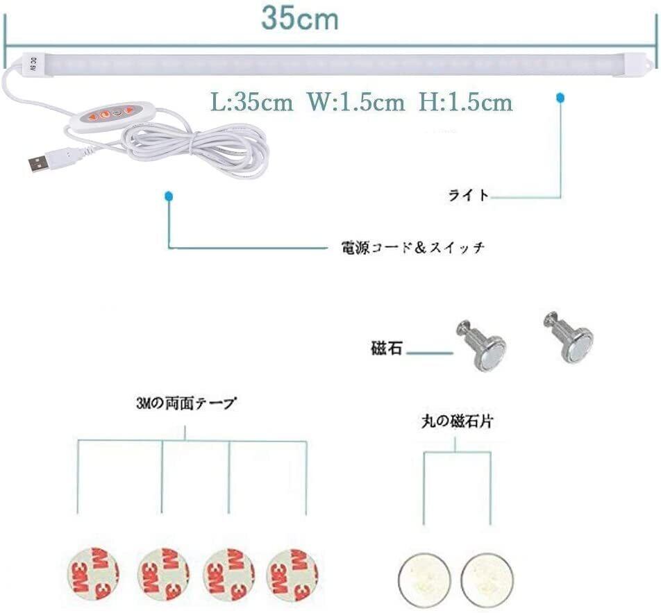 35cm USB LEDバーライト キッチン 収納棚下 間接照明 調光調色可能 磁石/3Mテープで簡単取付 工事不要 省エネ目安し