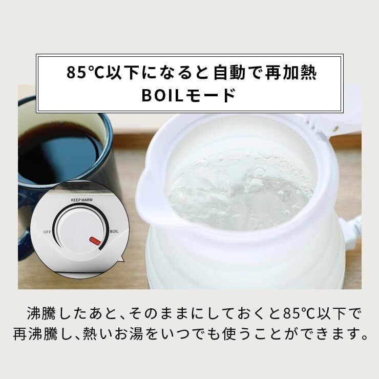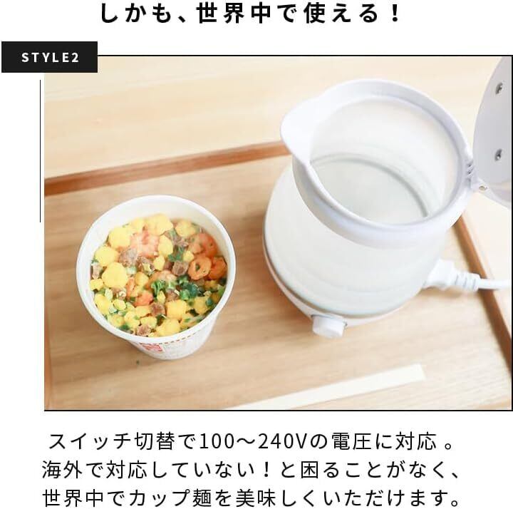 スリーアール ケトル タビケトル 電気 キャンプ 折り畳みケトル 洗浄剤 3包入り 600ml 1.5m 海外対応 電気ケトル アウトドア 折りたたみ ダブル保温 携帯 収納袋付き 持ち運び (本体+洗浄剤)
