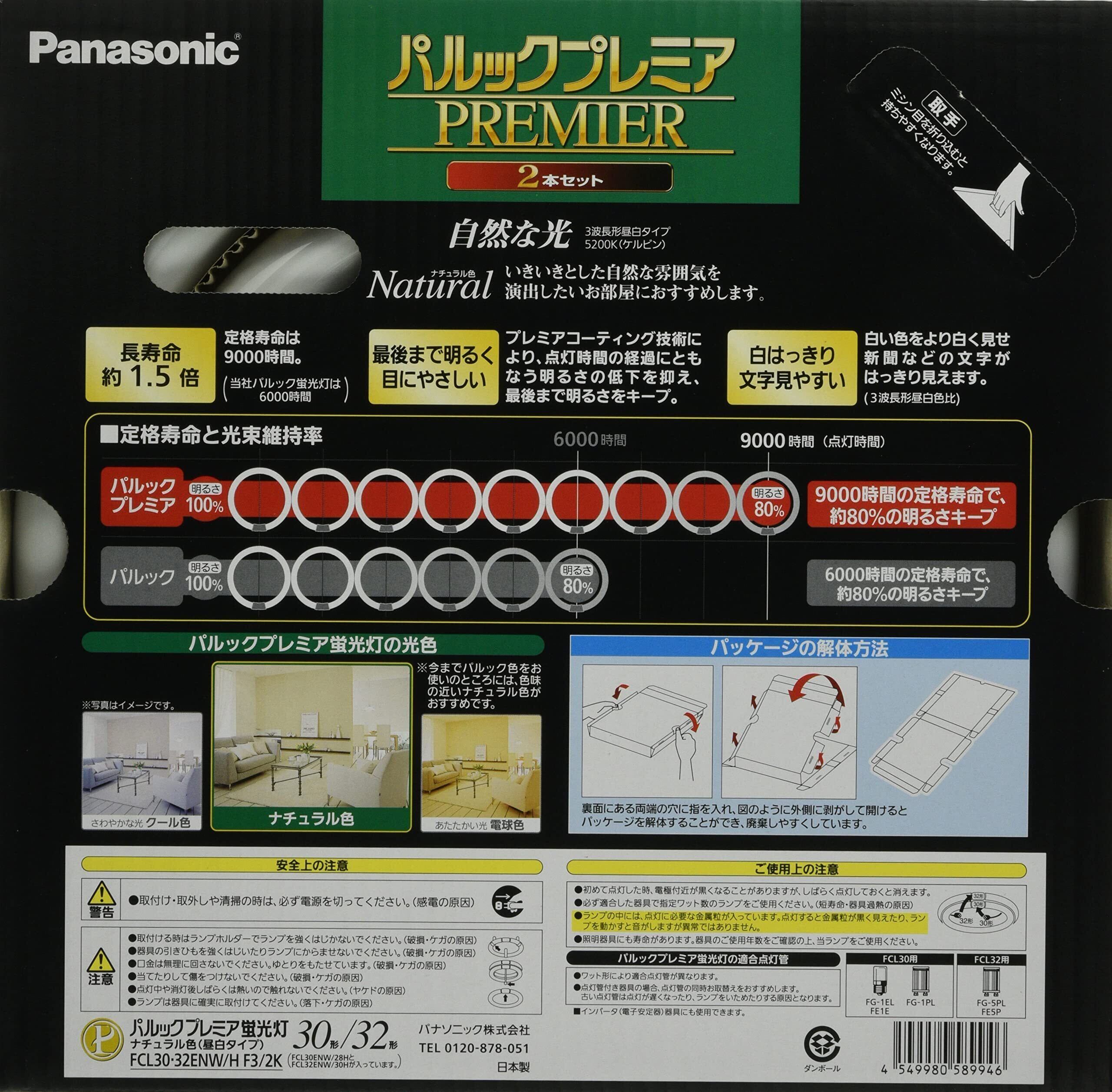 パナソニック 蛍光灯丸形 30形+32形 2本入 ナチュラル色 パルック プレミア FCL3032ENWHF32K