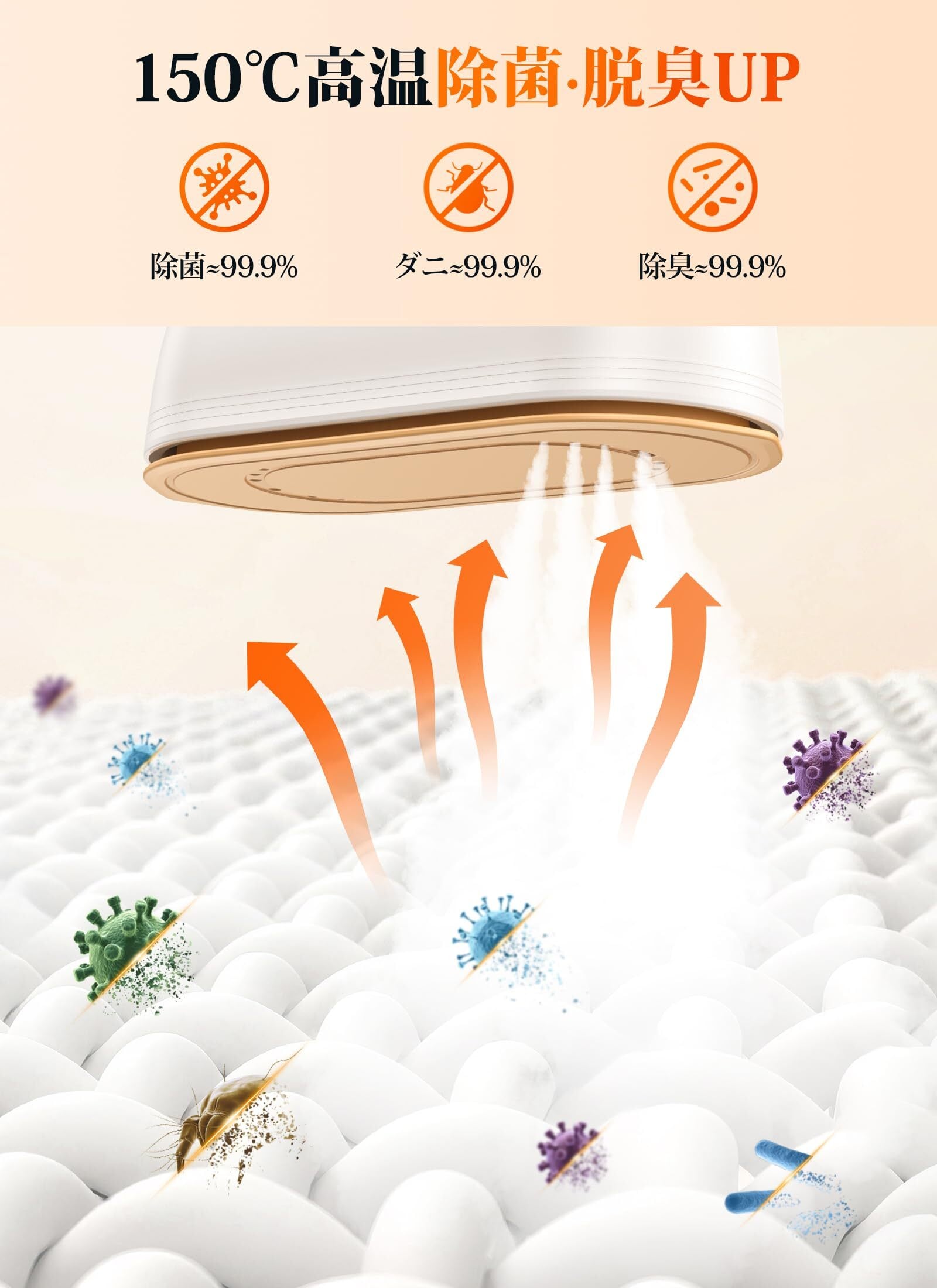 【折畳み式・除菌脱臭】ハンドルは180°回転で折畳み式なので、小型で収納しやすく旅行や出張先にも持ち運べます。150℃高温スチームは強力な除臭と殺菌機能で敏感肌にも優しいケアを実現します。衣類に付いている生乾き臭や汗臭、タバコ臭、飲食臭、ペット臭、菌、花粉、汚れ、ダニが増える梅雨時期には特に重宝します。お客様や御家族の健康的な生活を送りたいと考えている人にとって最適な選択です!