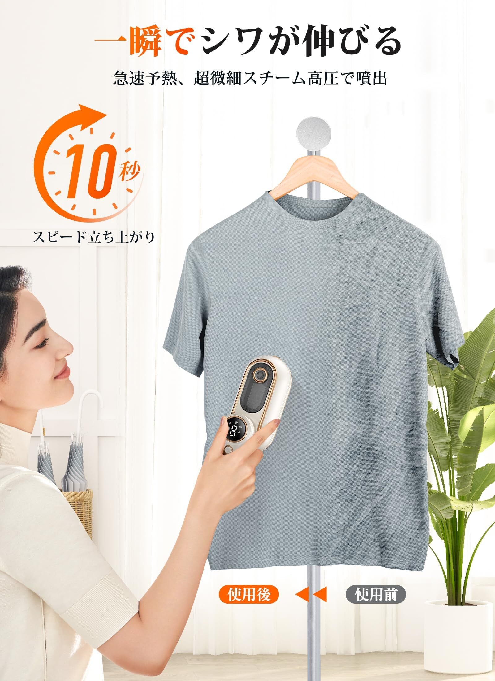 【1秒でシワ消去・3WAYアイロン】約10秒で素早い立ち上がり、3倍パワフルスチームを瞬間的に噴射し、衣類繊維の奥まで浸透させ、きれいにシワ伸ばしながら型崩れを直してくれます。お出かけ寸前でもストレスなく衣類ケアを済ませます。eueアイロンは衣類スチーマーとして服をハンガーにかけたままシワ取りができて、アイロン台(スチームでプレス&ドライでプレス)を使用ことも可能、一台三役を果たすスチームアイロンです。