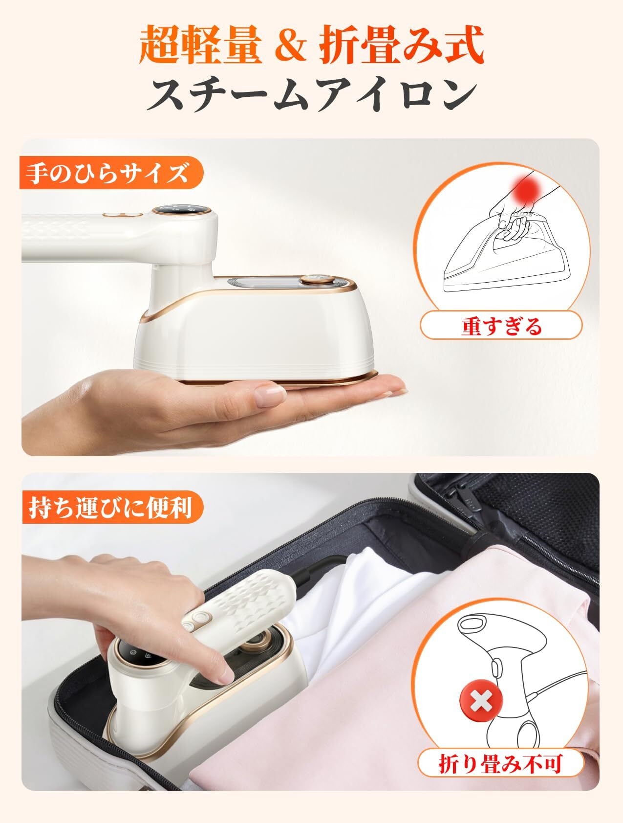 eue スチームアイロンアイロン 衣類スチーマー シワ伸ばし 折畳み式 10秒立ち上がり 150℃高温 除菌 脱臭 ハンドル180°回転 携帯アイロン 軽量 小型 ハンディ 家庭 出張(ホワイト)