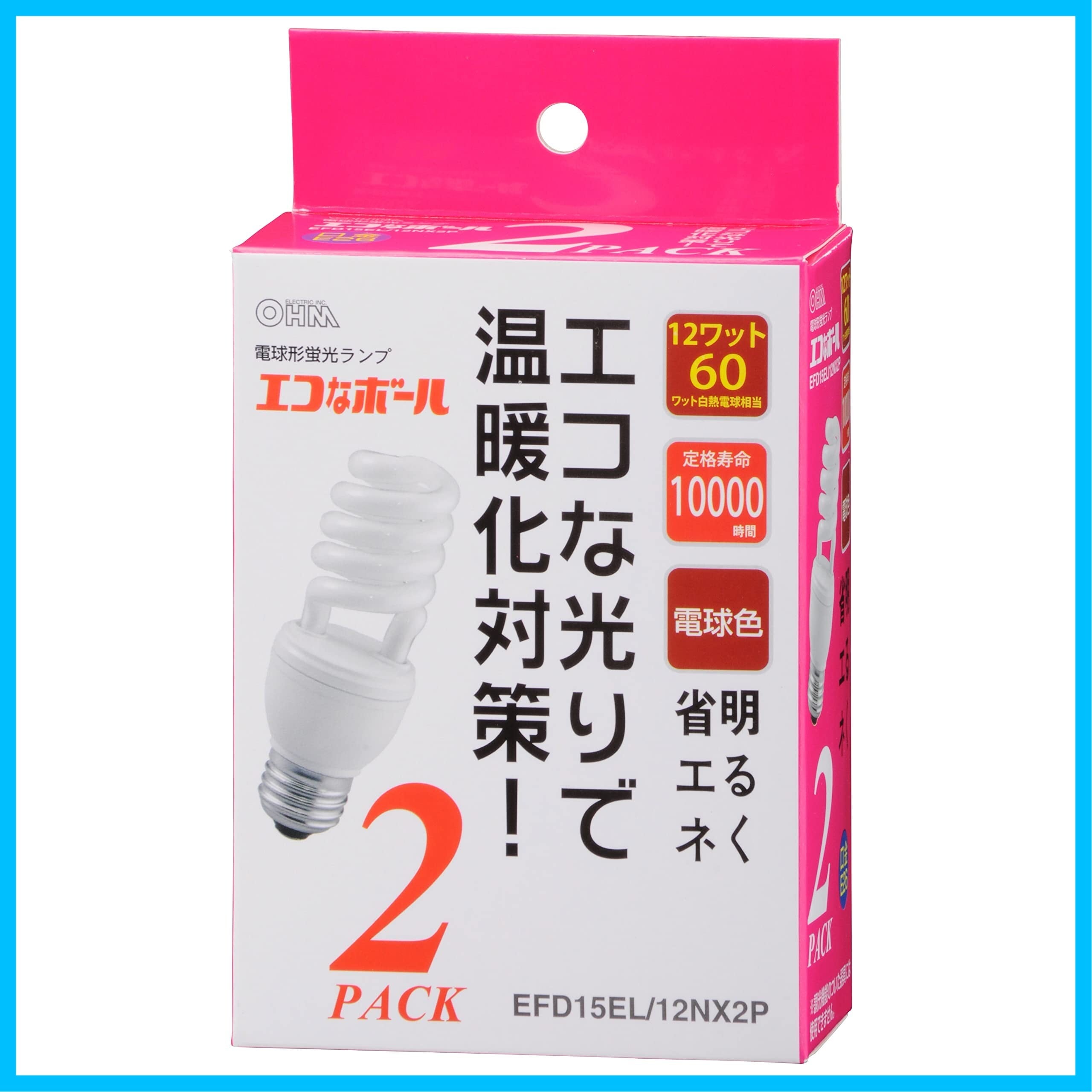 エコなボール60W形口金E26電球色スパイラルタイプ2個入り EFD15EL/12NX2P