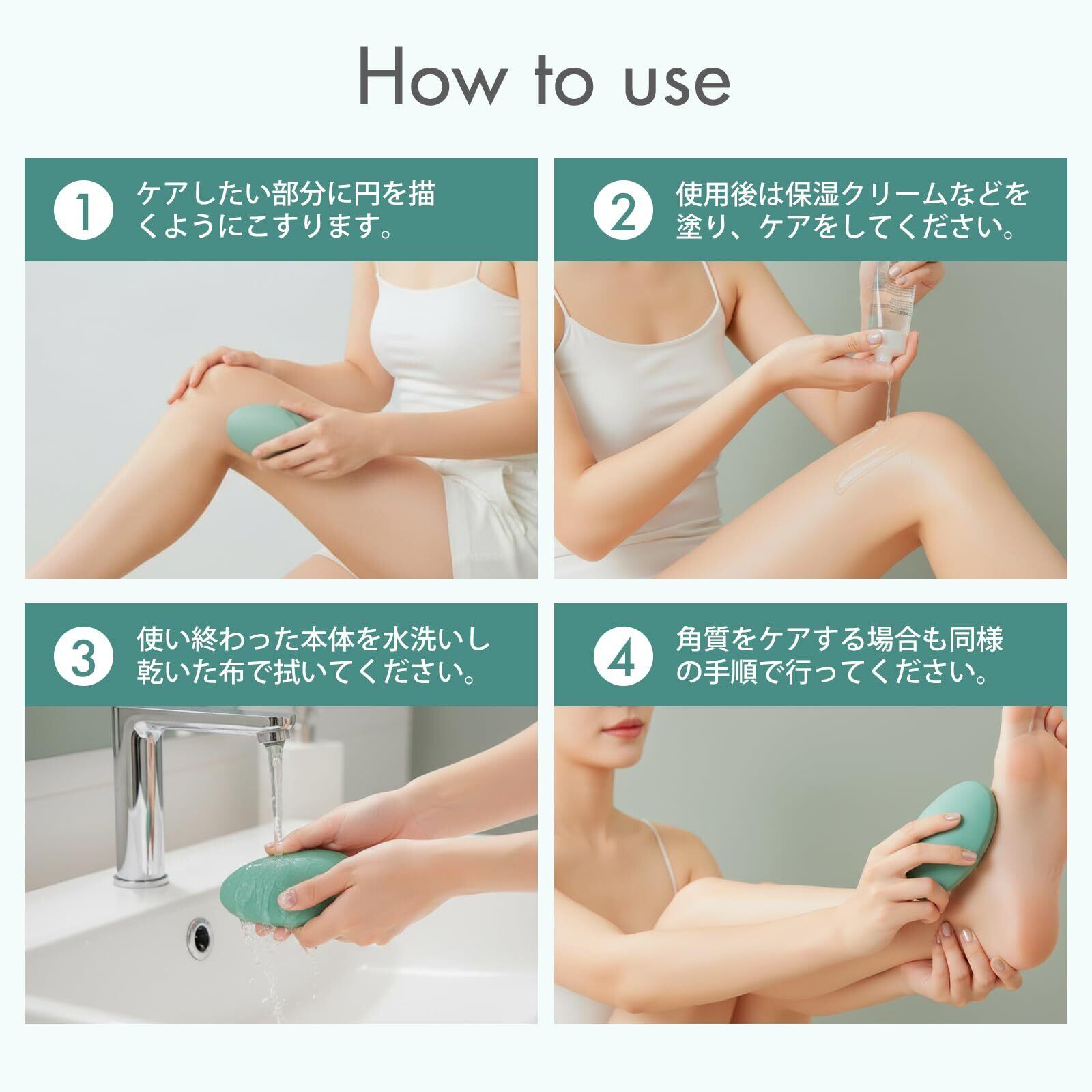 【使用簡単】使用方法は簡単で、脱毛初心者でも安心して使用できます。使用後は水で直接洗うことができ、いつでも清潔を保てます。使用方法:①軽く拭き取る → ②円を描くように優しくマッサージ → ③水で洗い流すか拭き取るだけで完了!