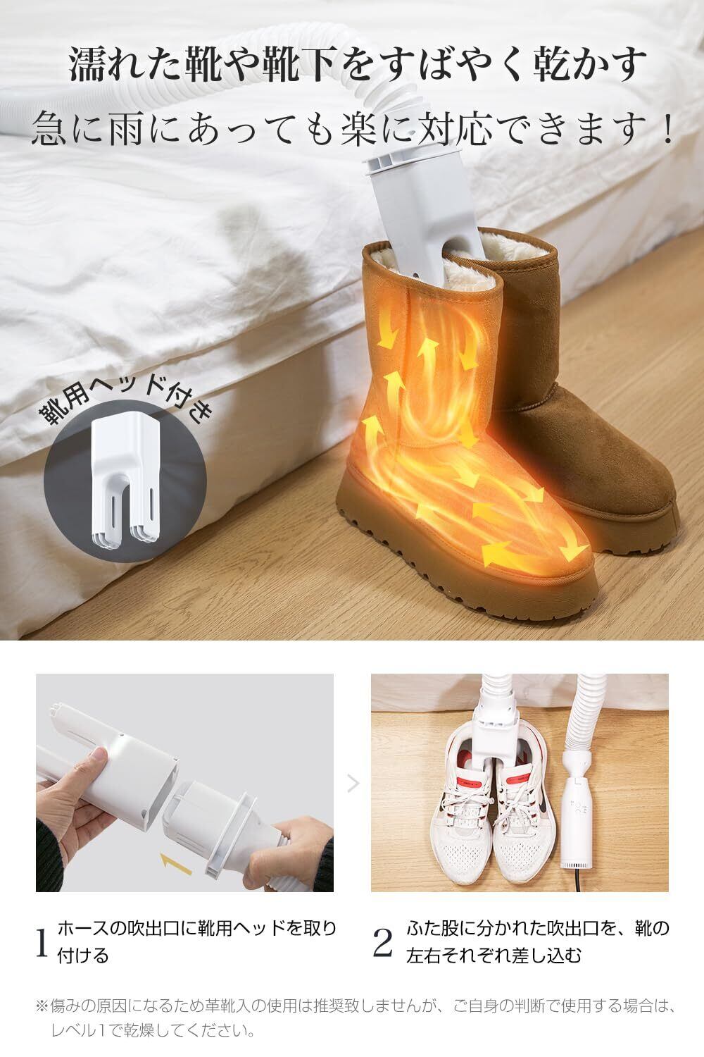 【一台多役・400Wハイパワー】乾燥機は我々の生活に暖かさを与えるパートナーです。布団の乾燥と温めは当然、殺菌消臭、靴や衣類乾燥、ダニ退治、送風、湿気除去など様々な使用シーンに対応します。消費電力400Wなので、従来品より風量が多く、乾燥効率も驚くほど向上しました。ホースは取り外し可能、伸縮自在の構造で、乾燥する位置も手軽に変更することができます。