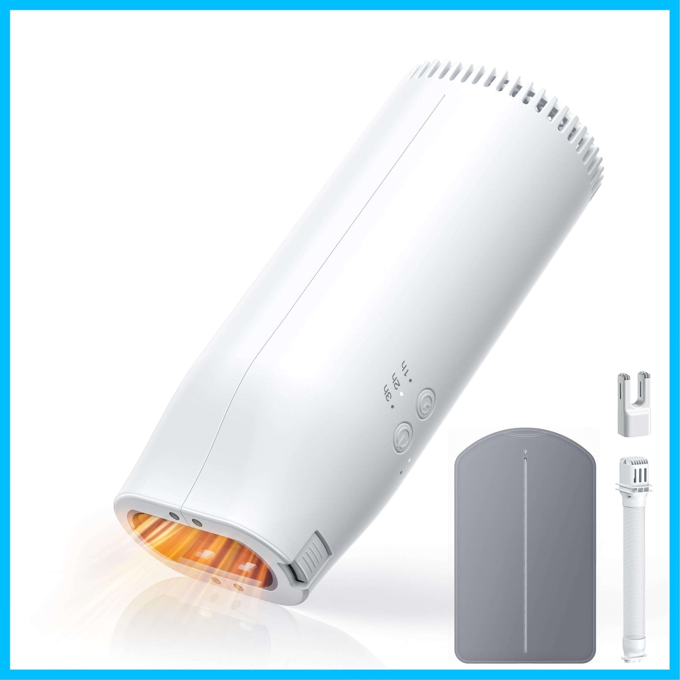 【持ち運び/収納便利・パッケージ内容】本体サイズ:約68*55*160mmで、僅か307gの重量で、女性にも面倒なく片手で持ち運べます。使用後、ホースは短く縮められ、取り外して収納することもできます。パッケージ内容:乾燥機本体×1、乾燥ホース×1、靴用ヘッド×1、衣類乾燥袋×1、取扱説明書×1。商品の使用中に万が一商品不具合のようでしたら、の購入履歴より弊社までご連絡いただければ迅速に対応いたします。
