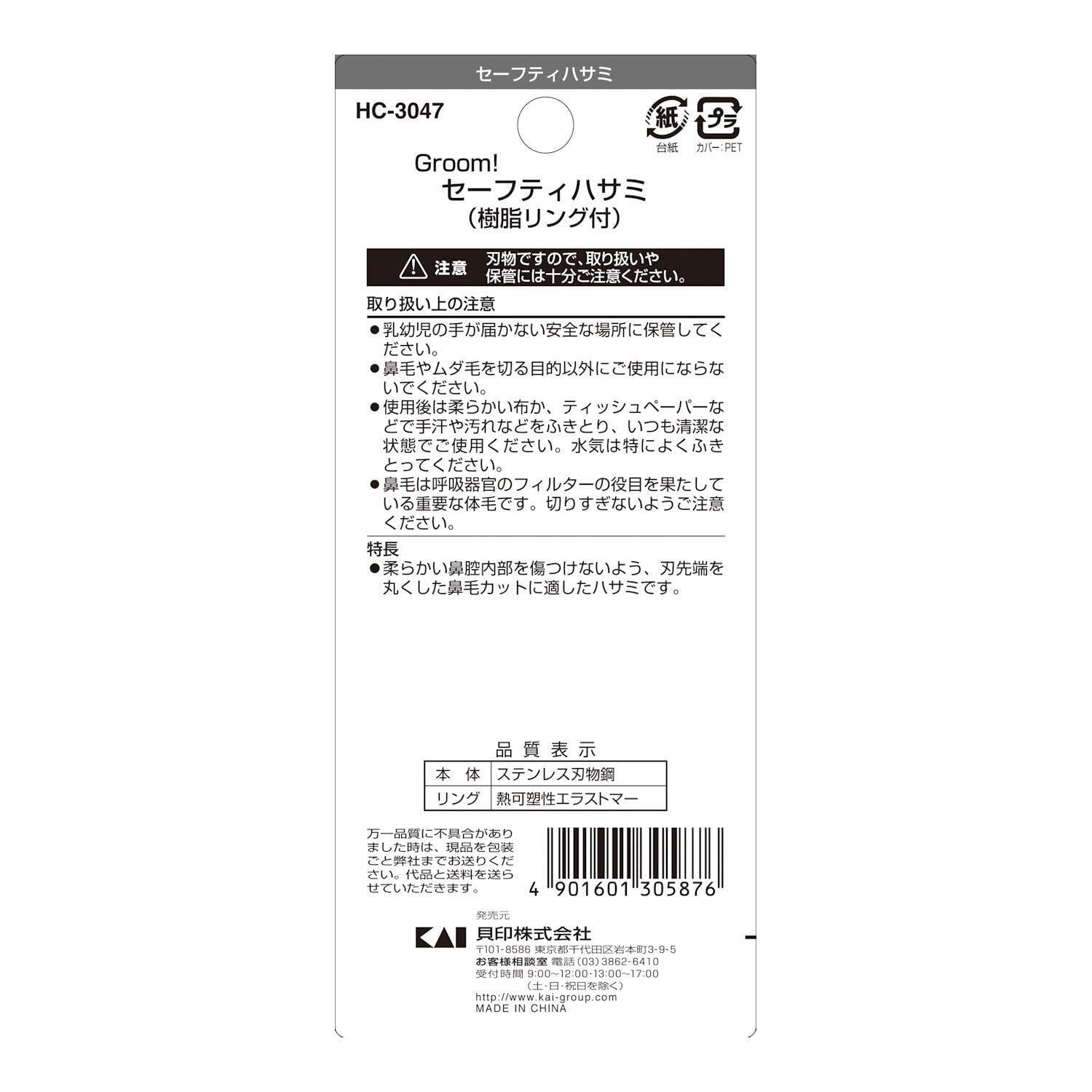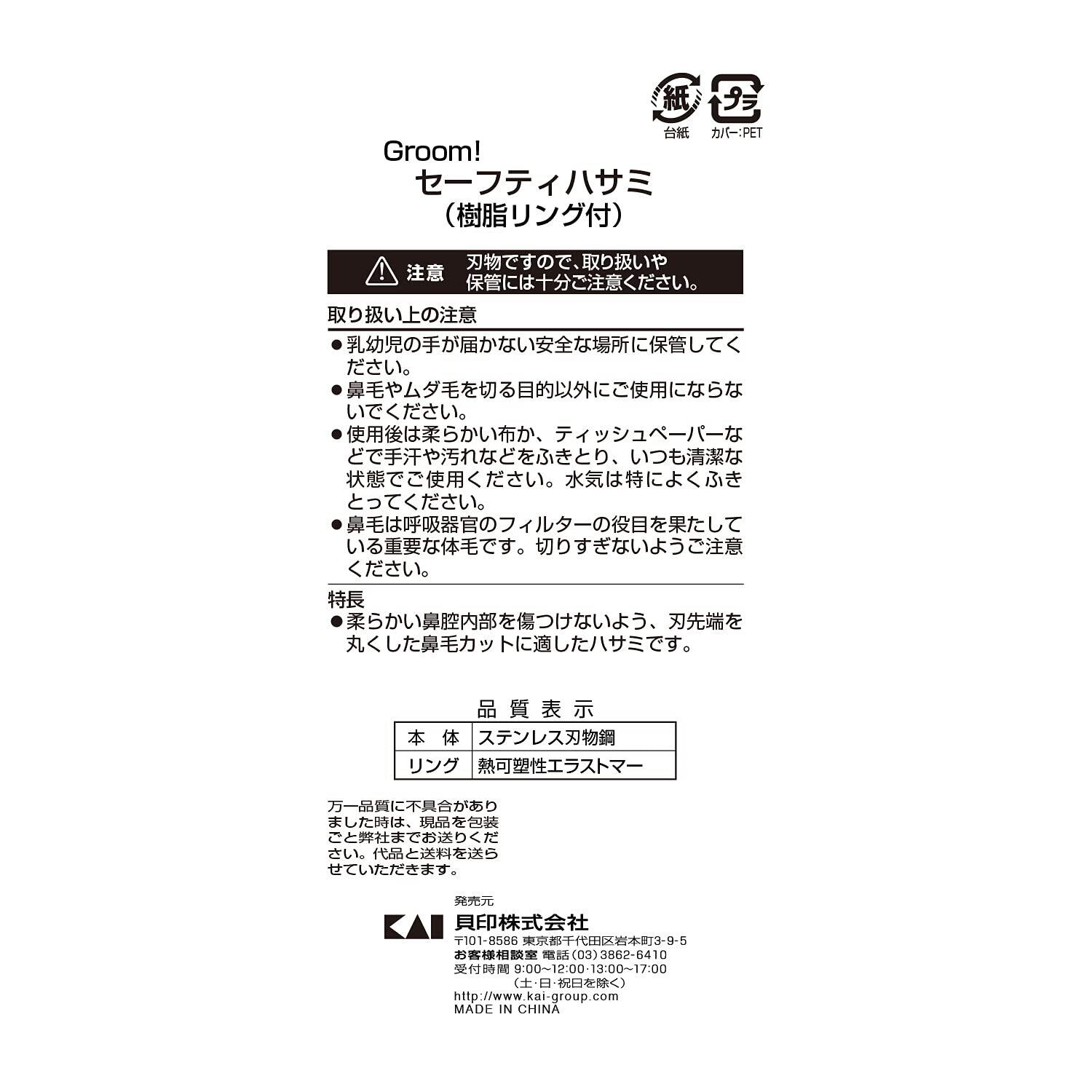 貝印 Groom! 鼻毛 ハサミ 先丸 眉毛 ムダ毛 HC3047