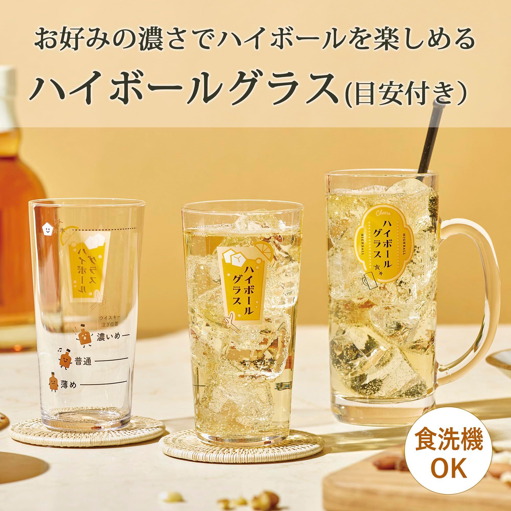 好きな濃さで割れる目安つきグラスにハイボールが加わりました。グラスにウイスキーを入れたときの濃さの目安となる位置をプリントしました。お好みの濃さでハイボールをお楽しみください。専用パッケージに入っていますので、プレゼントにもおすすめです。