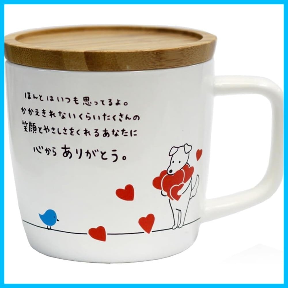 アルタ Artha マグカップ キモチマグ 蓋つき ありがとう 280ml 食洗器対応 電子レンジ対応 磁器/天然木 取っ手が手になじみやすい 贈り物 AR0604182