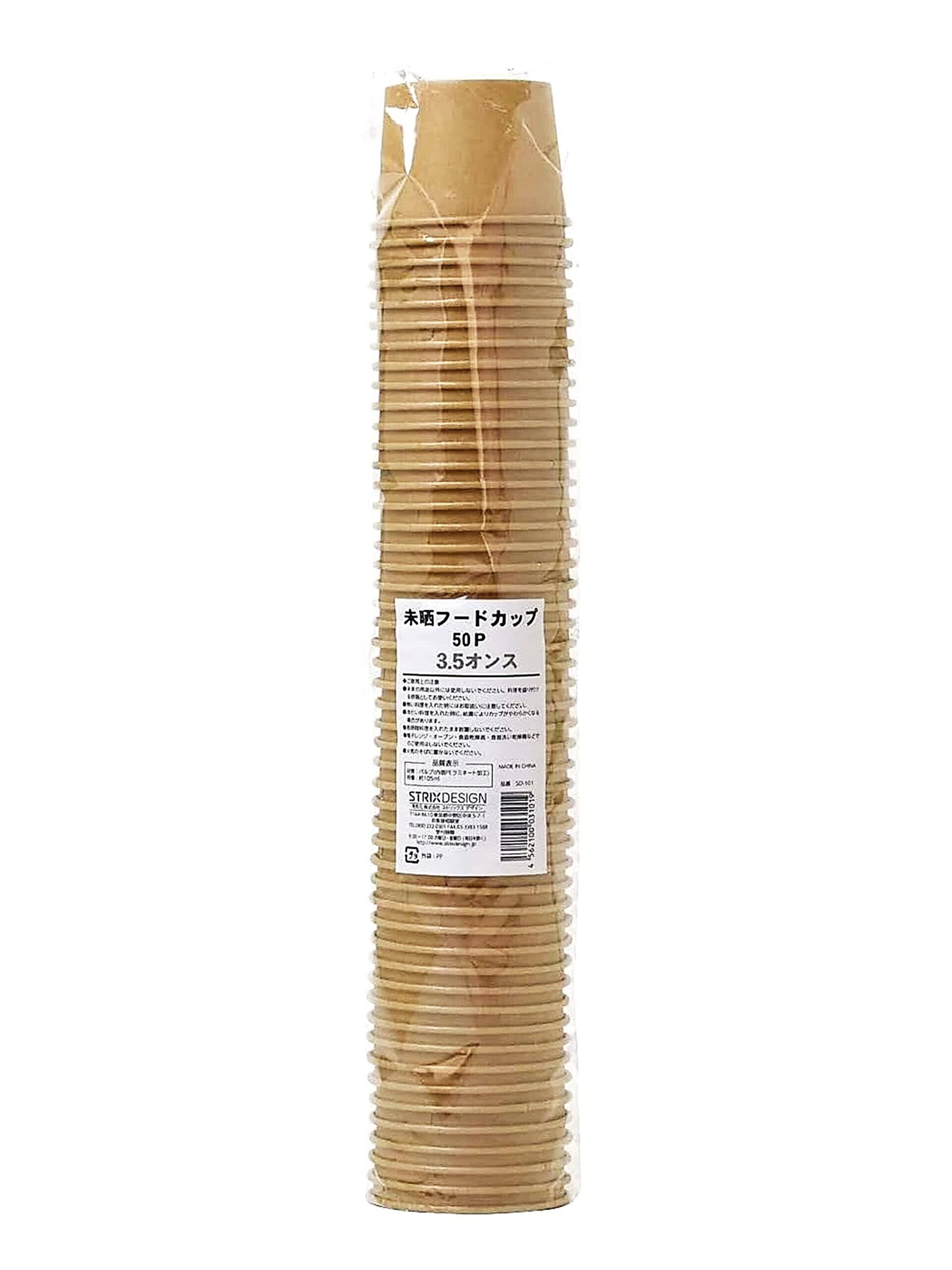 ストリックスデザイン 使い捨て容器 フードカップ 業務用 50個 105ml 3.5オンス 未晒し ブラウン 水や油に強い 内側ラミネート加工 使い捨てカップ カフェ アウトドア お菓子作り SD-101