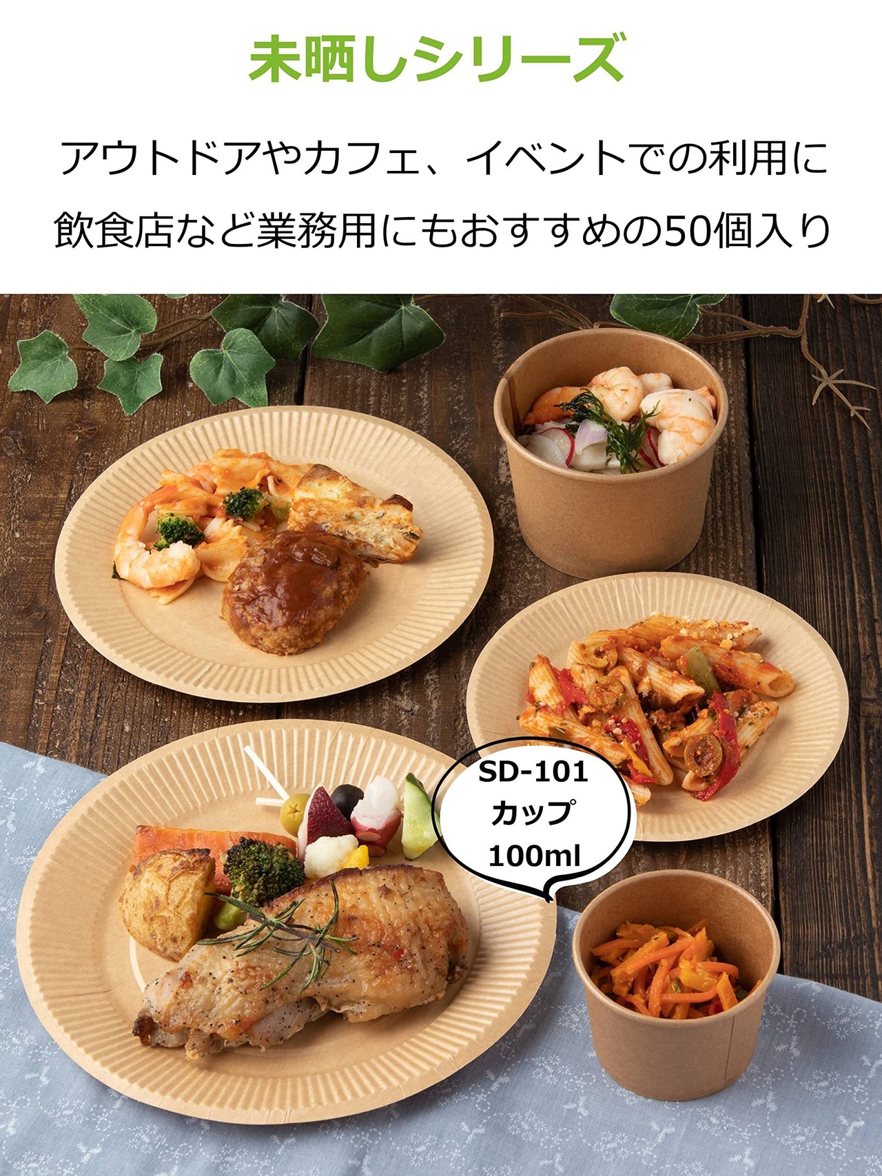 【 特徴 】自然な風合いの 未晒し の フードカップ 。50個入りで業務用にもおすすめ。