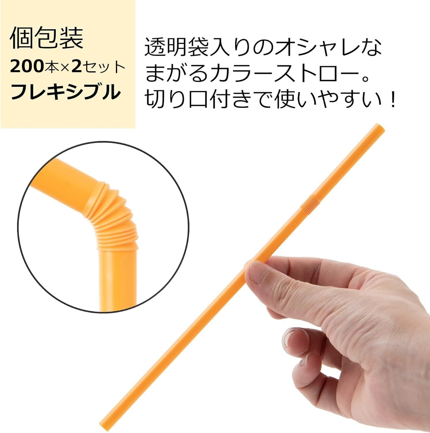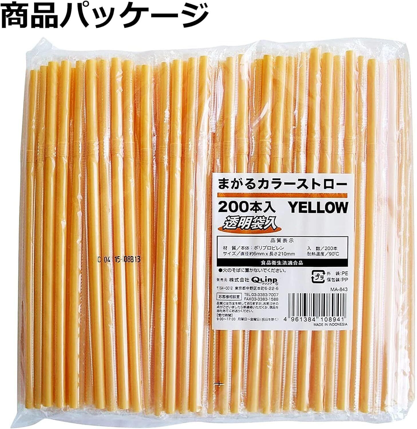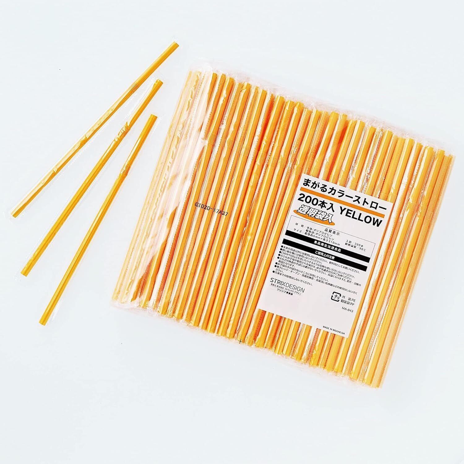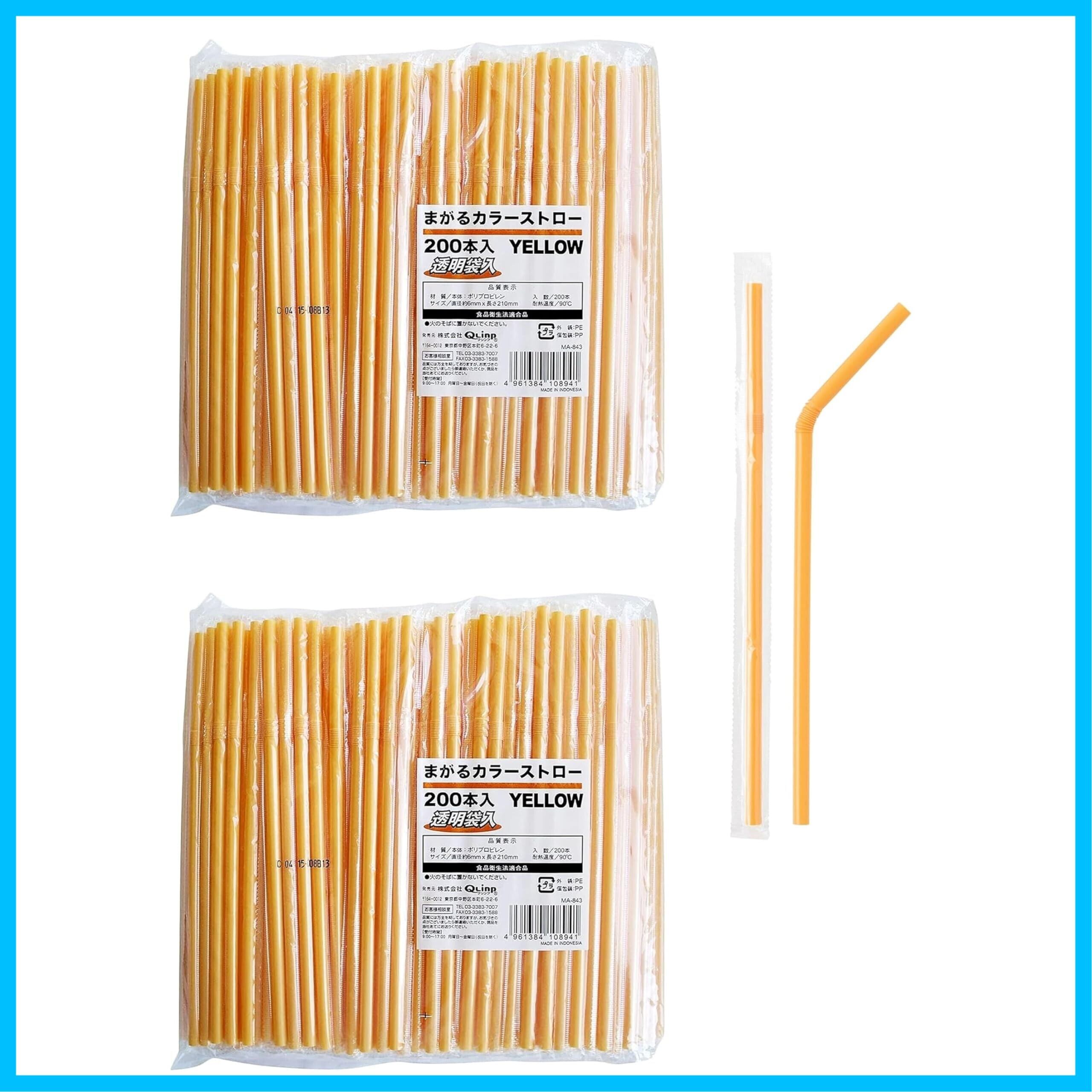 ストリックスデザイン ストロー まがる カラーストロー 個包装 400本 (200本 ×2個セット) 21cm イエロー おしゃれ 透明袋入り フレキシブル 業務用 大容量 MA-843
