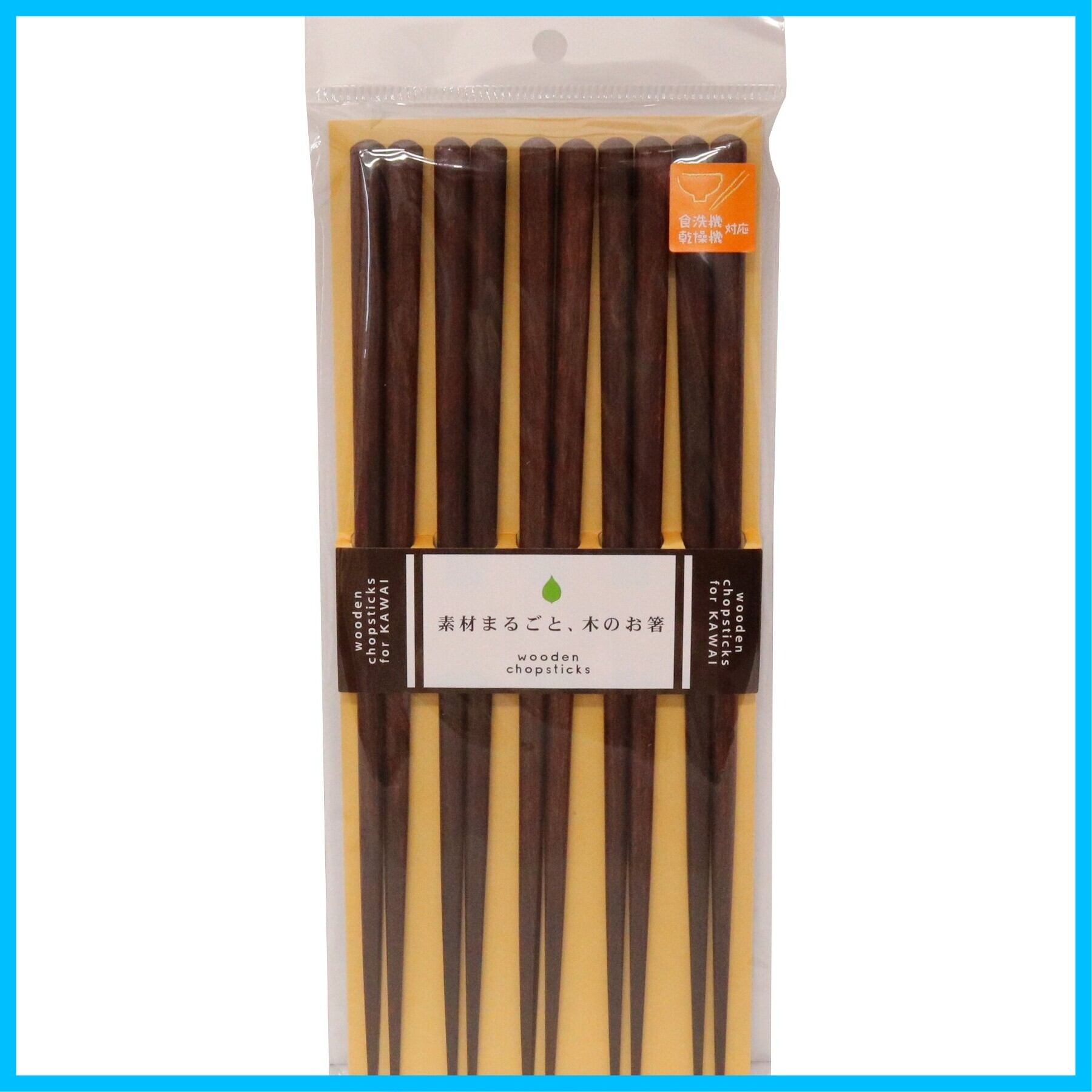 カワイ 日本製箸 食洗機対応 木箸5膳セット 茶 23cm 26534