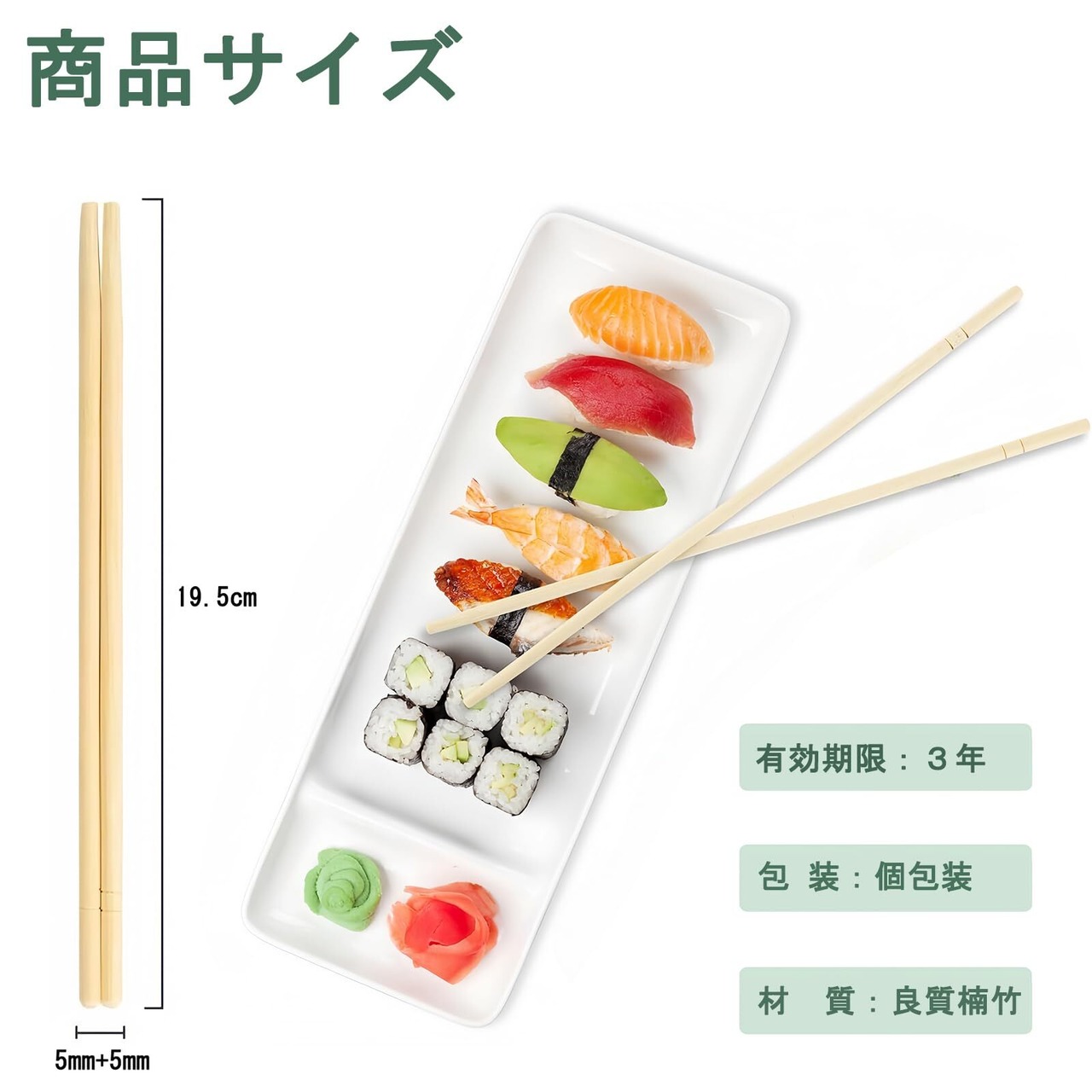 サイズ:長さ約19.5cm 直径5mm+5mm 100膳入