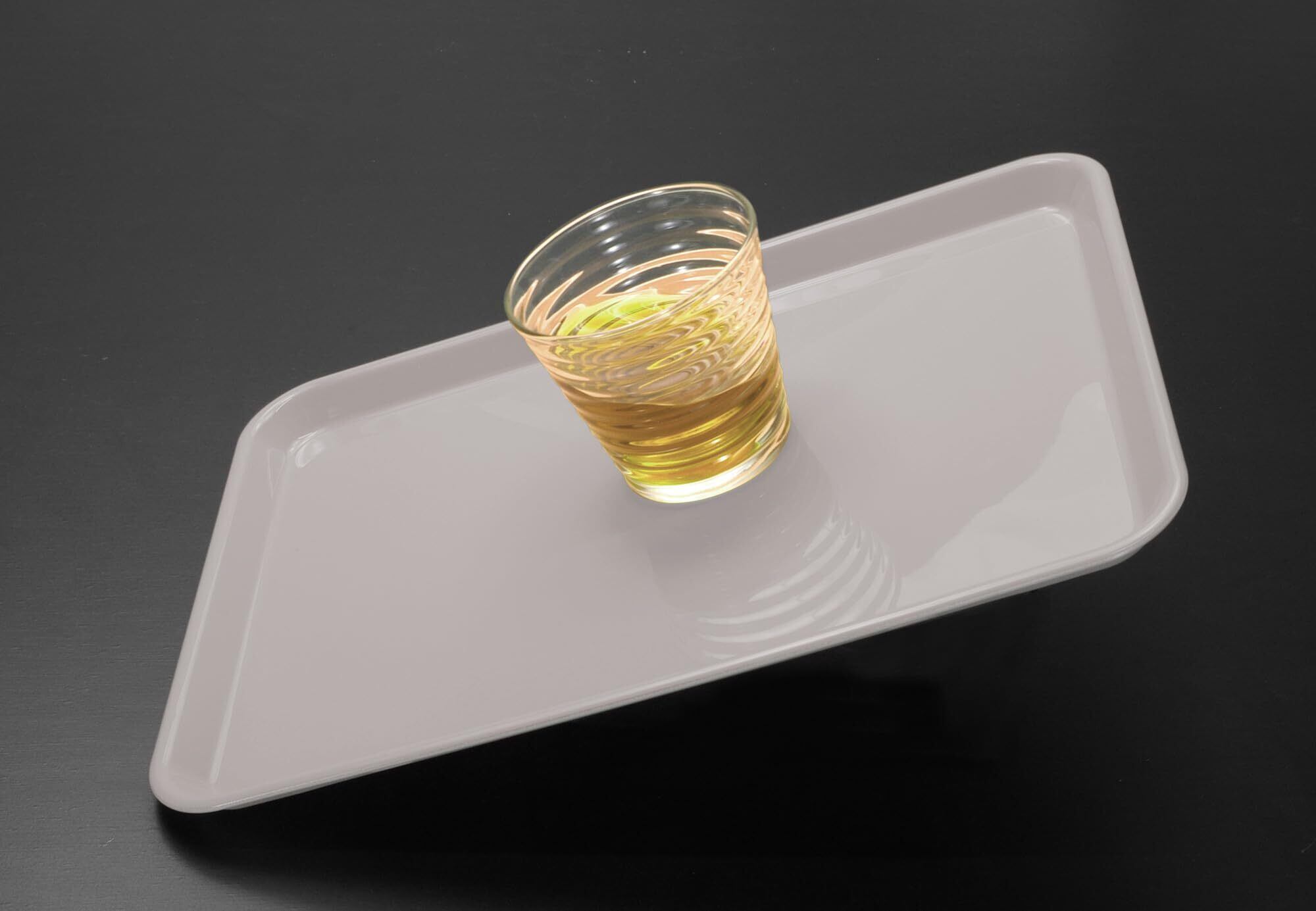 お料理を運ぶだけじゃもったいない!便利な機能が4拍子揃ったこのトレーは、紀州漆器の塗り職人が1枚1枚艶消し塗りで仕上げたグレイッシュなスモークカラーが特徴です。光沢仕上げの従来色とは異なり、艶消し塗りはマットな質感で食卓を落ち着いた印象に演出します。すべり止めコーティングされた表面は、ほどよいすべり止め効果で載せた食器が滑りにくく、ママのお手伝いが大好きなお子様にも安心してご使用いただけます。