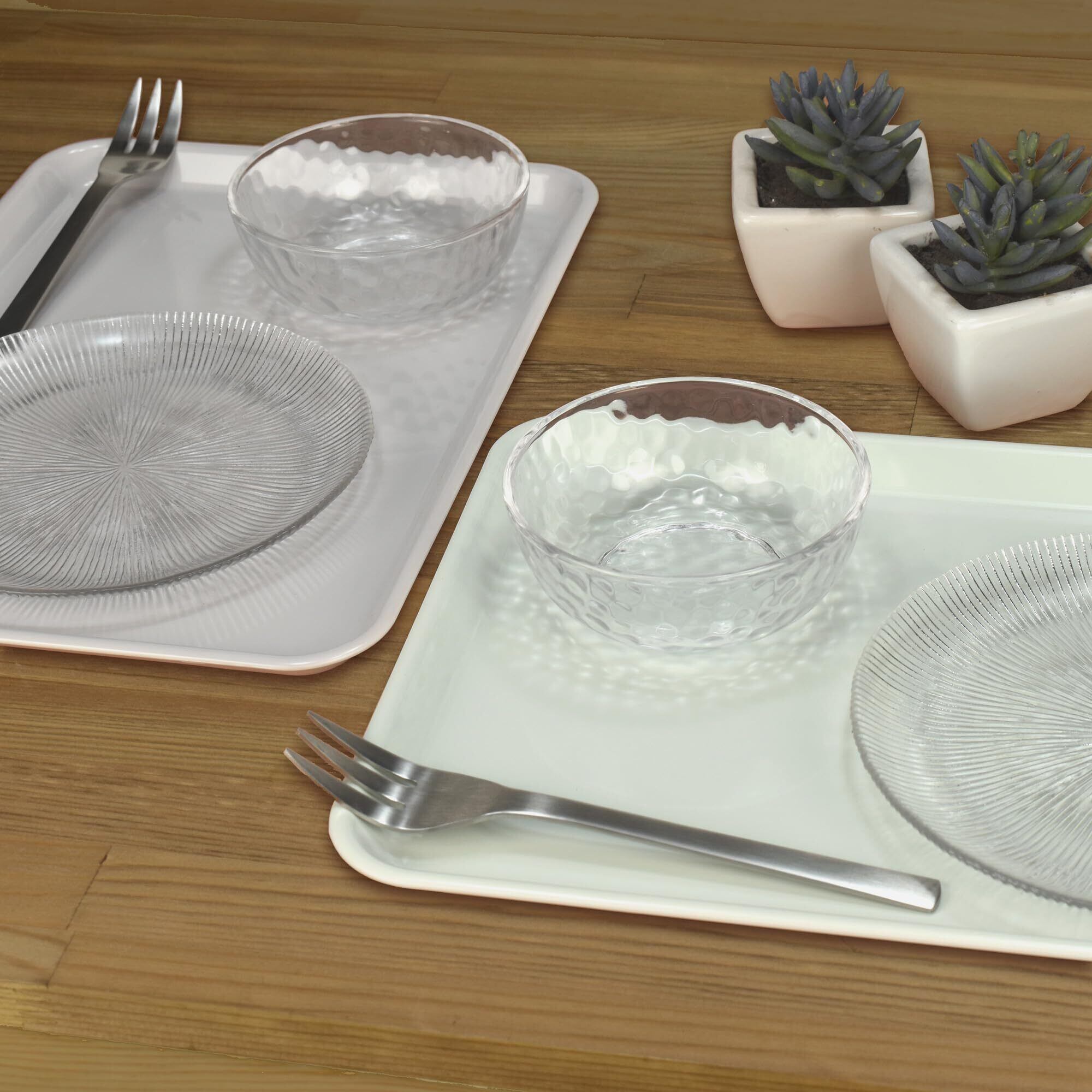 さらに、電子レンジ対応なので、トレーに食器をのせたままレンジで温めることができ、加熱後は熱い食器に触れずにトレーごと取り出せます。隅々まで使えるスクエアフォルムのデザインで、お料理をのせてテーブルへ運んだあとはそのままランチョンマットとしても活用可能。どんな雰囲気の食卓にも合いやすいデザインが魅力です。食べこぼしは食後にさっと水洗いでき、お手入れも簡単。素材には地球の自然環境やサステナビリティを意識したエコなリサイクルPET樹脂を使用。軽く丈夫で熱に強い素材です。多機能ながらもお求めやすい価格設定で、日常使いに最適なアイテムです。