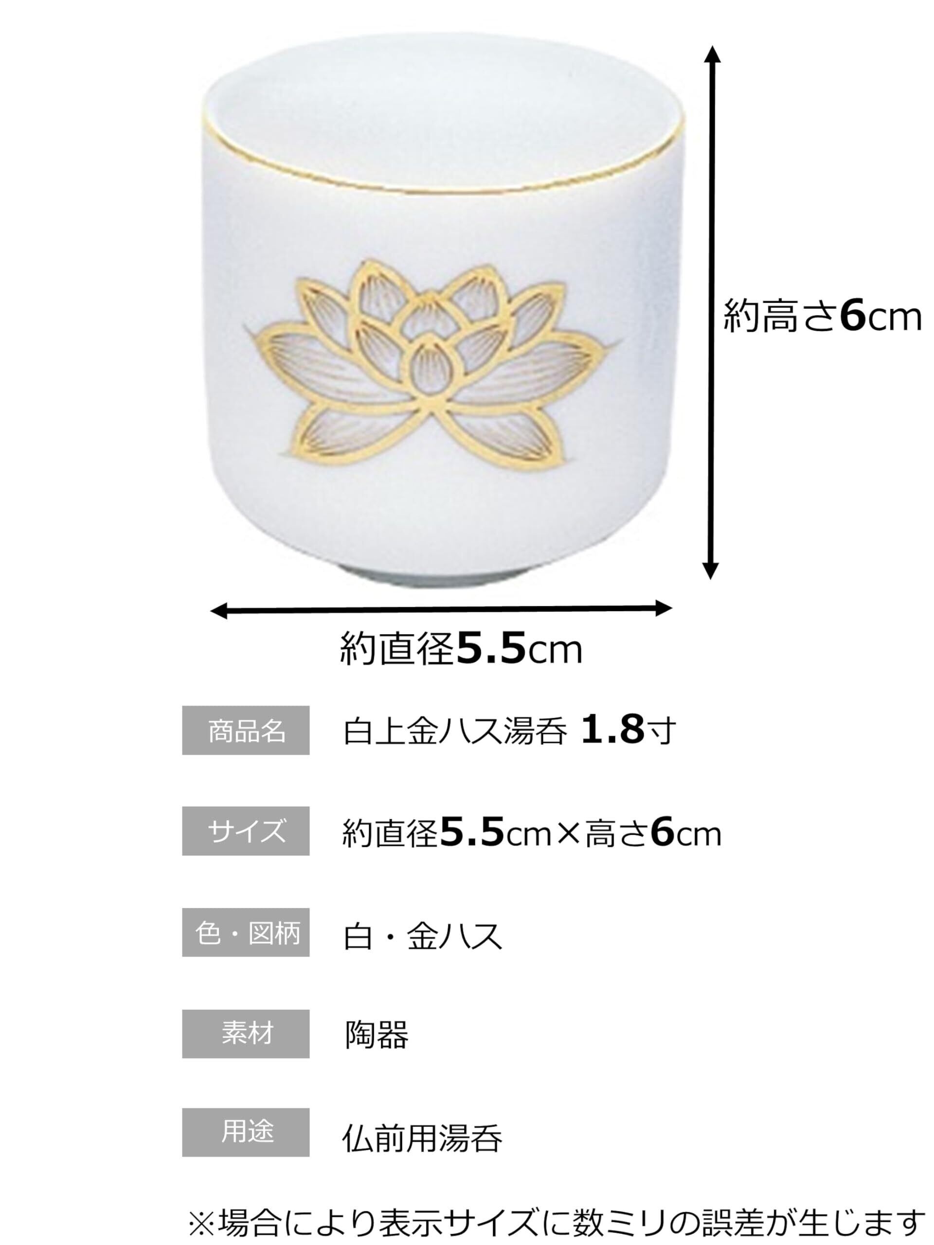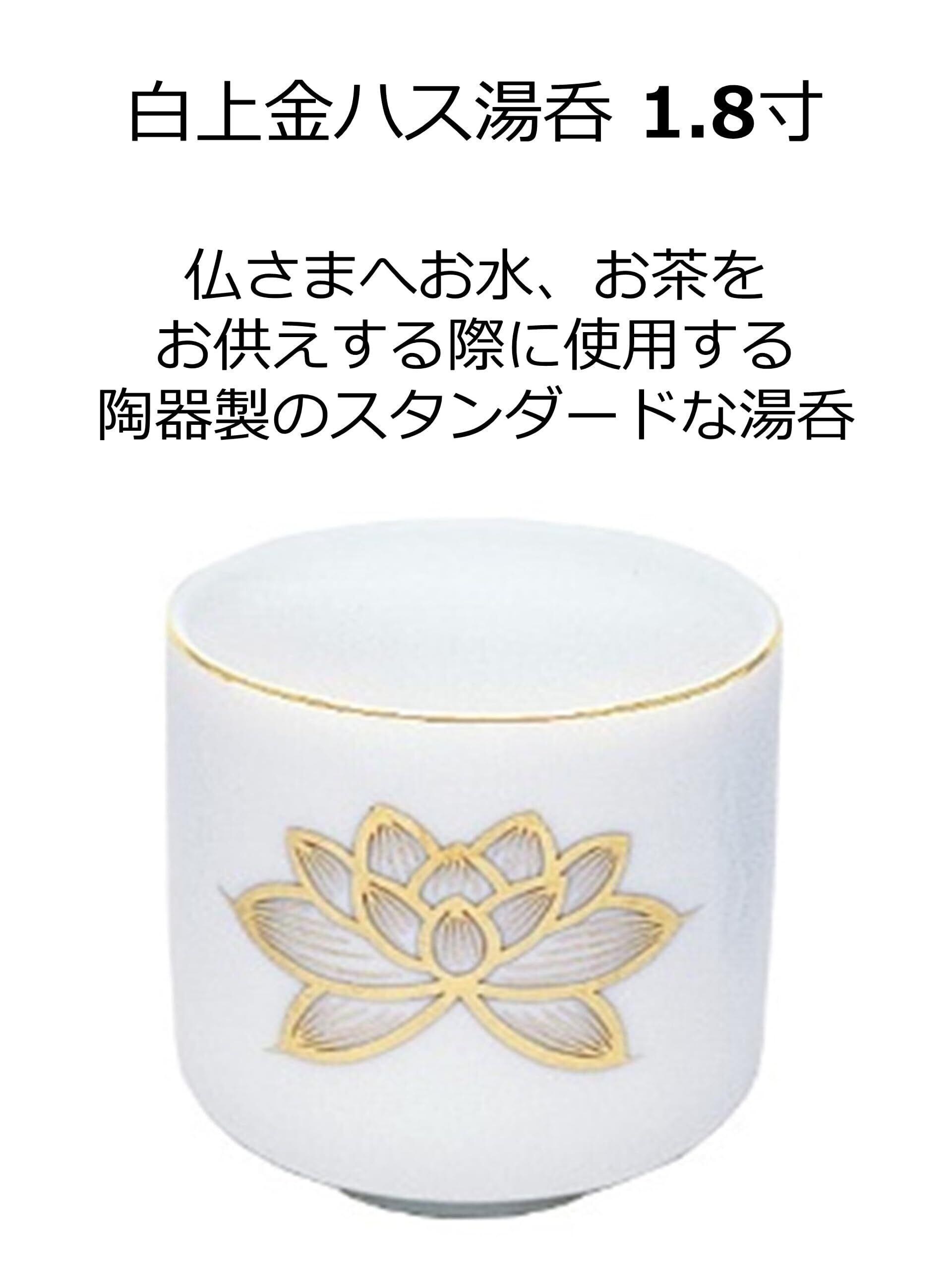 「白上金ハス 湯呑 1.8寸」は、ハスの絵柄の仏具です。