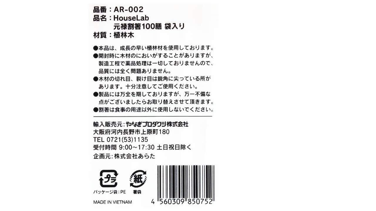 HouseLab(ハウスラボ) 元禄割箸 袋入り 100膳