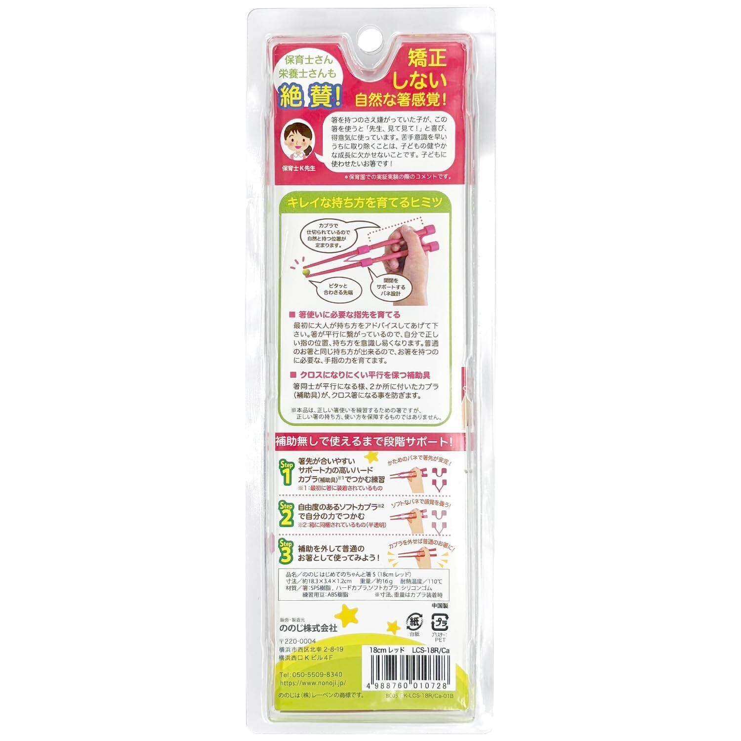 ののじ はじめてのちゃんと箸 S (18cm) レッド Sサイズ (x 1) LCS-18R/Ca