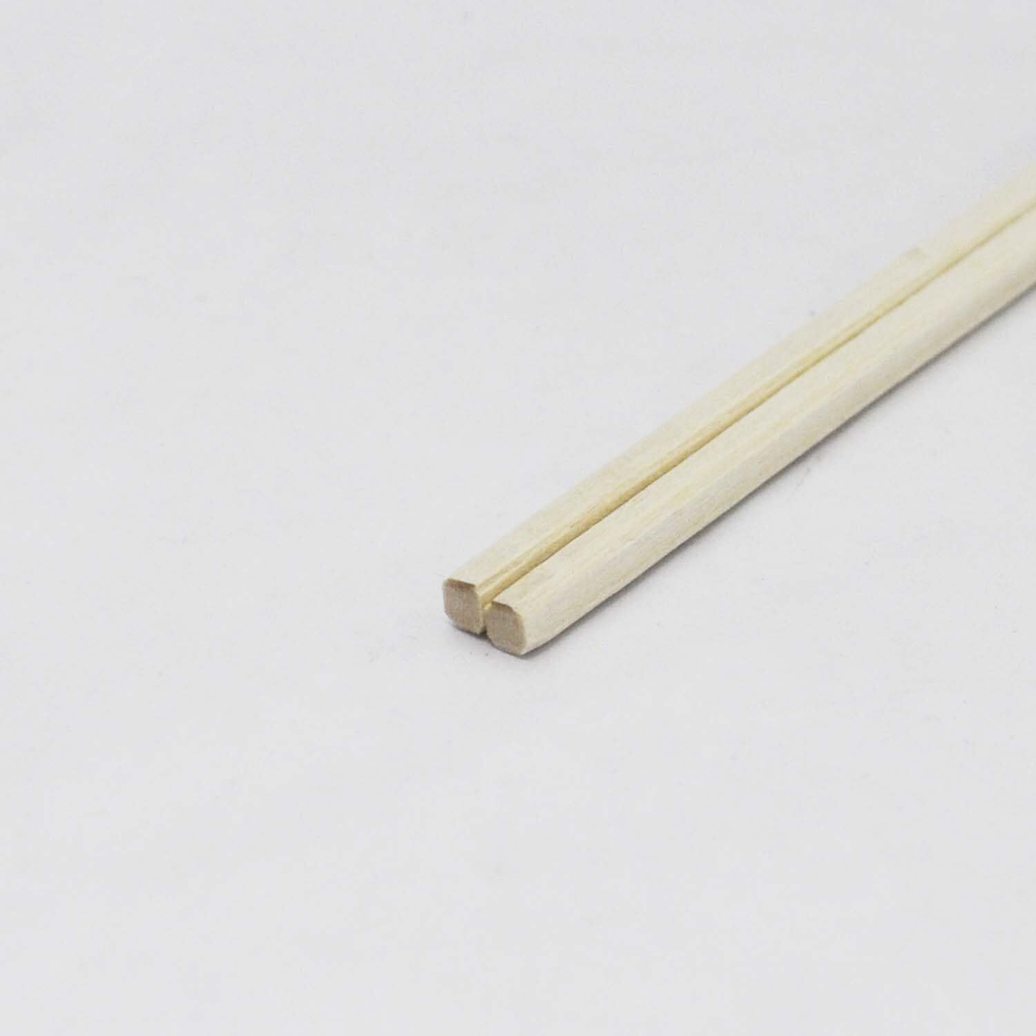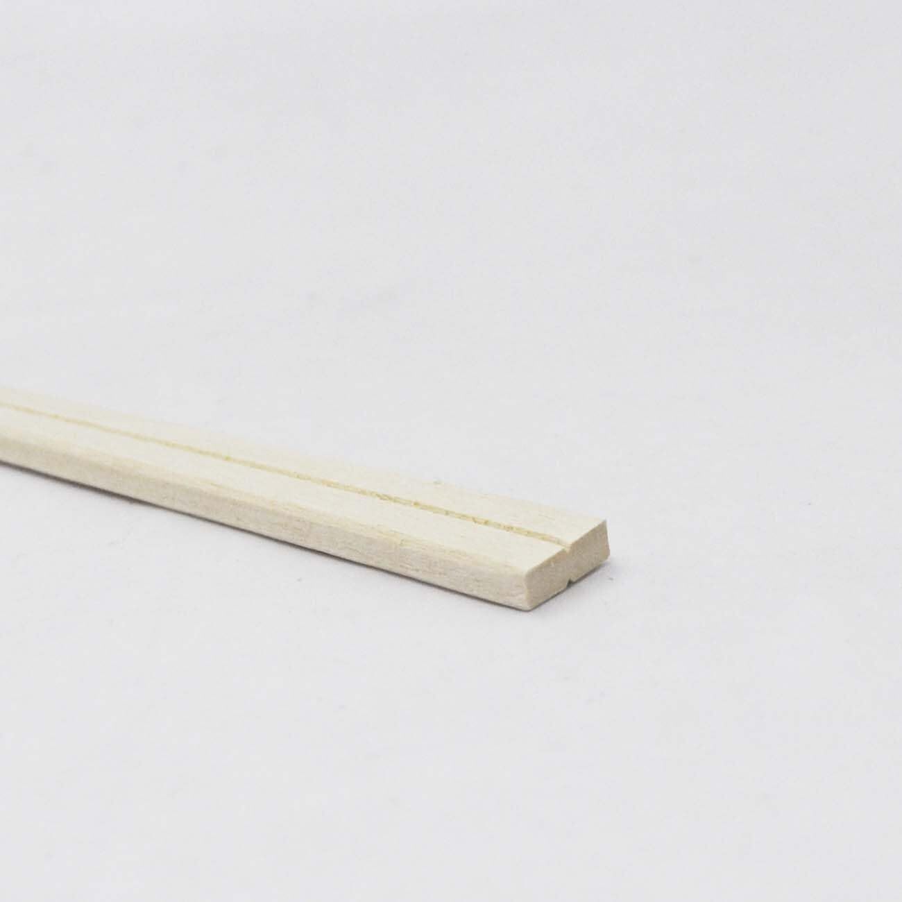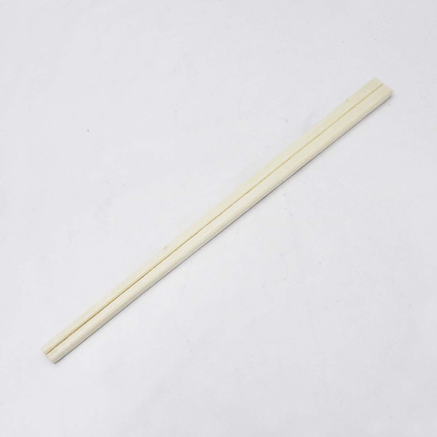 割箸の四つの角を削り、割りやすくするために中央部に溝を入れています。