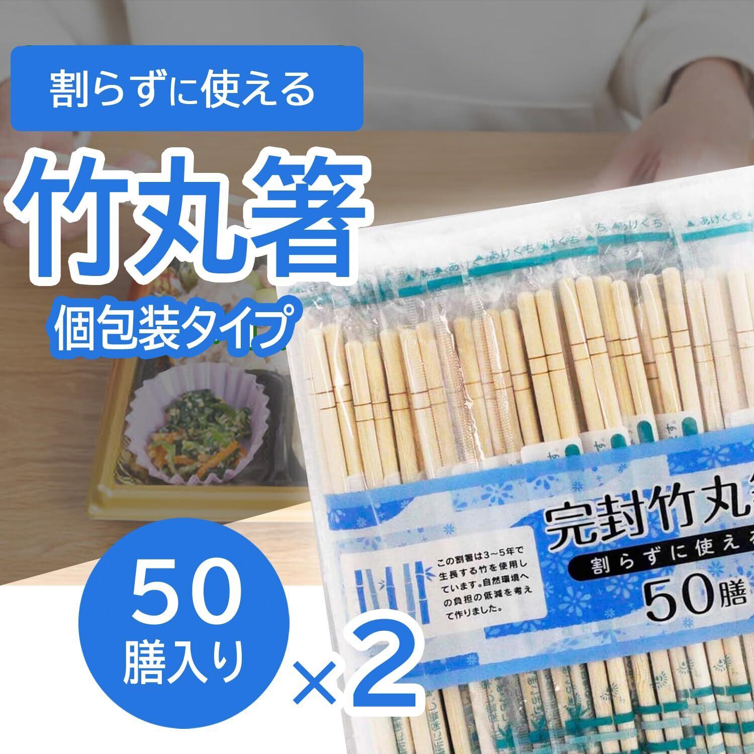 割らずに使える完封竹丸箸50膳×2個セット。