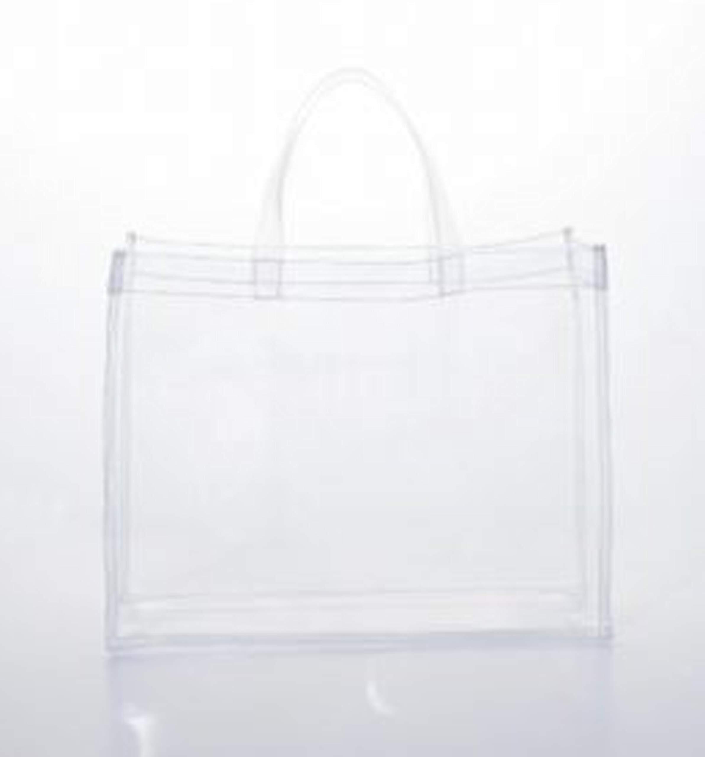 ビニールバッグ 透明 丈夫 な トート クリア バッグ L ヨコ長 W32×D10×H25cm ( A4入る) MCB-3225