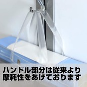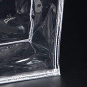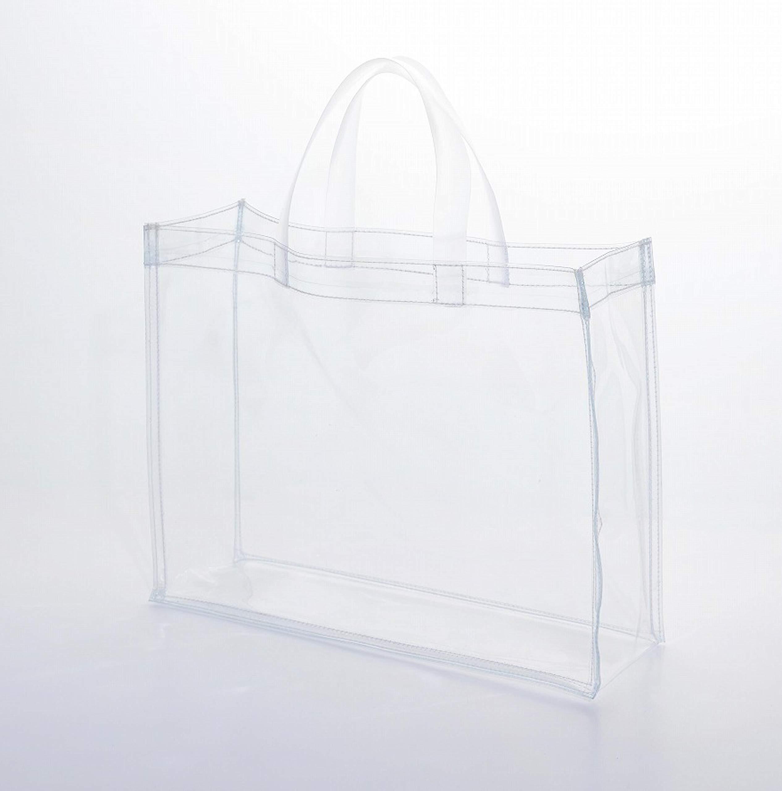 サイズ:幅320×マチ100×高280mm、 ハンドル長/280mm 、 生地厚/0.3mm素材:PVC仕上げ:縫製加工、 包装:抗菌pp袋入