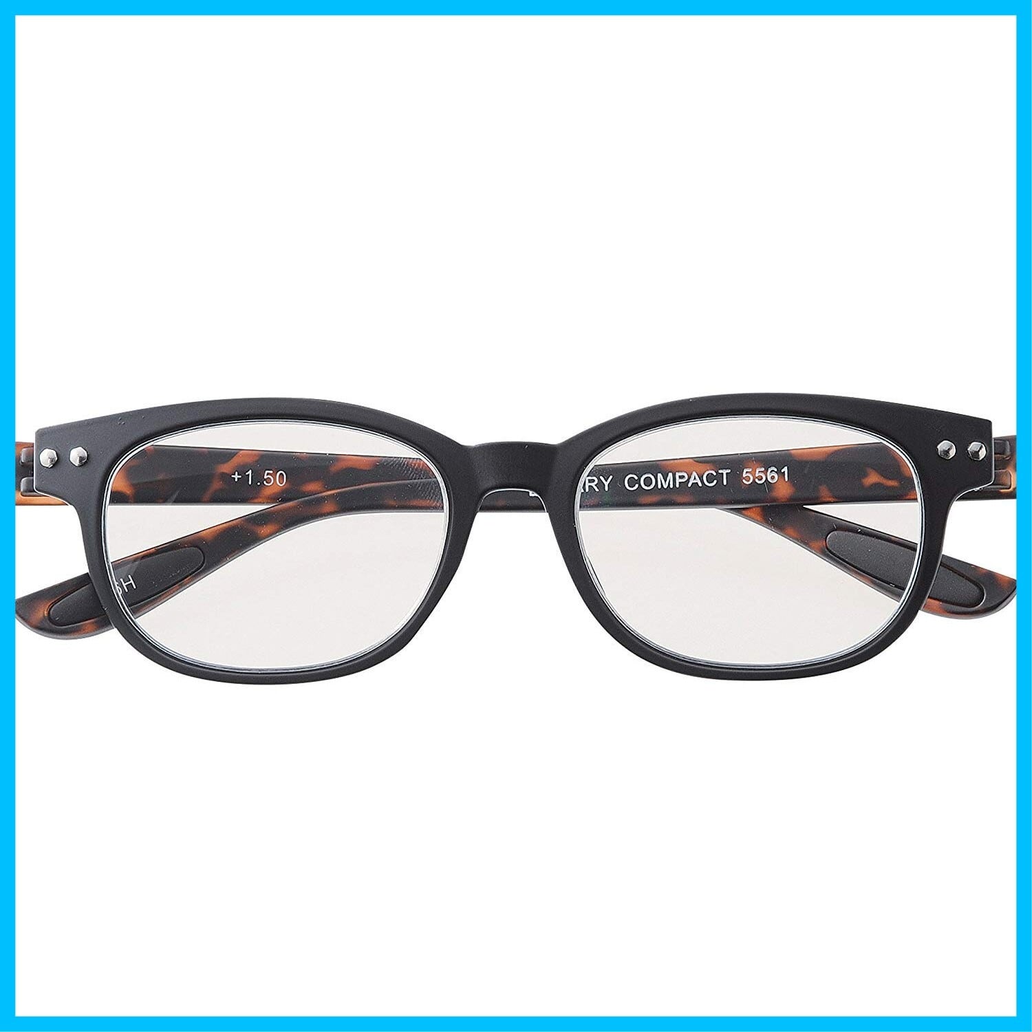 老眼鏡 ブルーライトカット 携帯 軽量 おしゃれ ウェリントン colorfulook ブラック デミ 度数+0.50 (カラフルック 軽量 形状記憶 フレーム) 5561-05