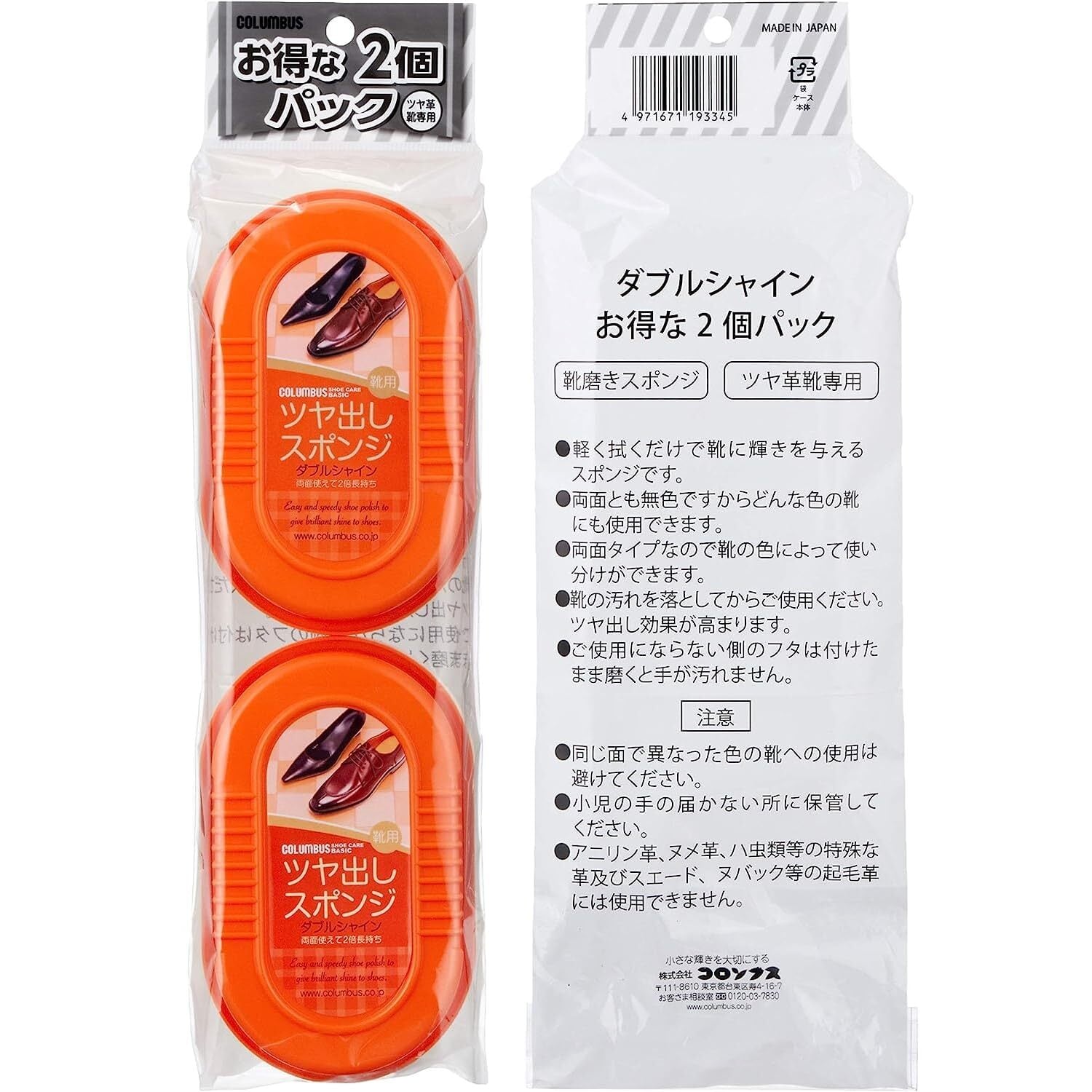 両面使えて簡単・便利な靴磨きスポンジ ダブルシャイン2個パック